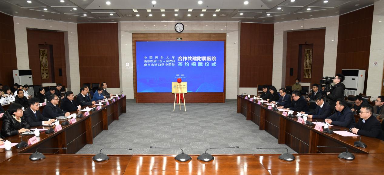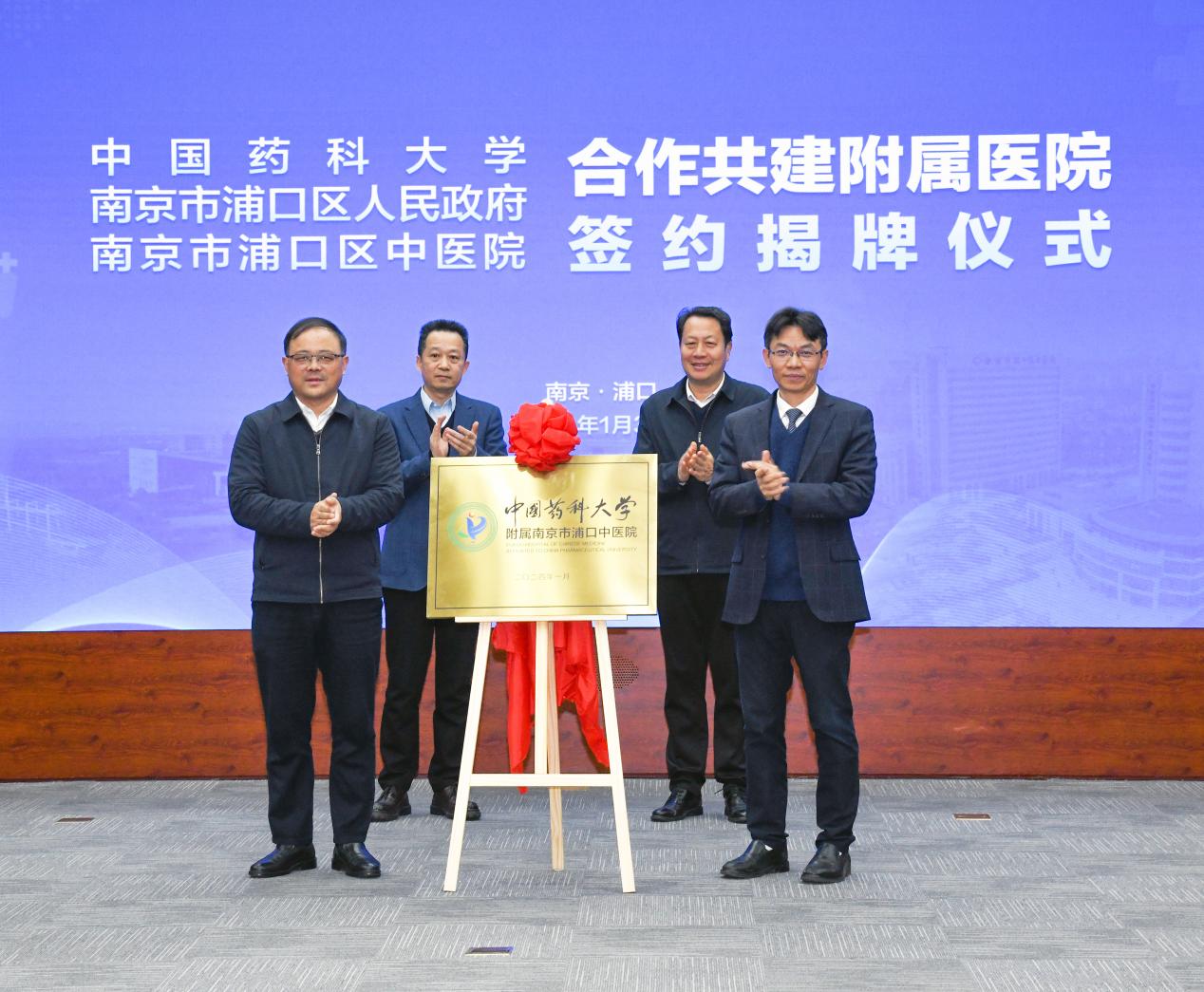 期间,校长郝海平与浦口区政府领导共同为beat365附属浦口中医院揭牌。副校长齐炼文代表学校签署三方合作共建协议。