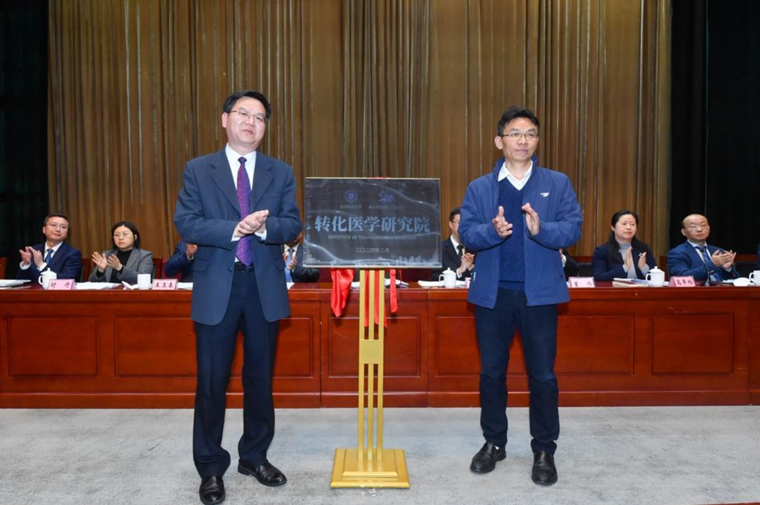 2月19日下午,beat365官方网站与南京市鼓楼区人民政府合作共建转化医学研究院揭牌仪式在南京市鼓楼区举行。这是beat365官方网站在强链补链延链上展现新作为要求,通过校地融合把“以临床价值为导向的生命健康科学研究”作为“有组织”的科研落地实践,打造世界领先、中国特色的健康医药科学中心和创新高地,更好地促进区域地方健康经济产业创新发展的又一创新举措。南京市鼓楼区委书记王安伟、beat365官方网站校长郝海平出席揭牌仪式。beat365官方网站副校长杨勇、校长助理邬瑞斌、科学技术研究院常务副院长李志裕以及鼓楼区相关单位负责同志参加仪式。仪式由鼓楼区委副书记、区长方靖主持。