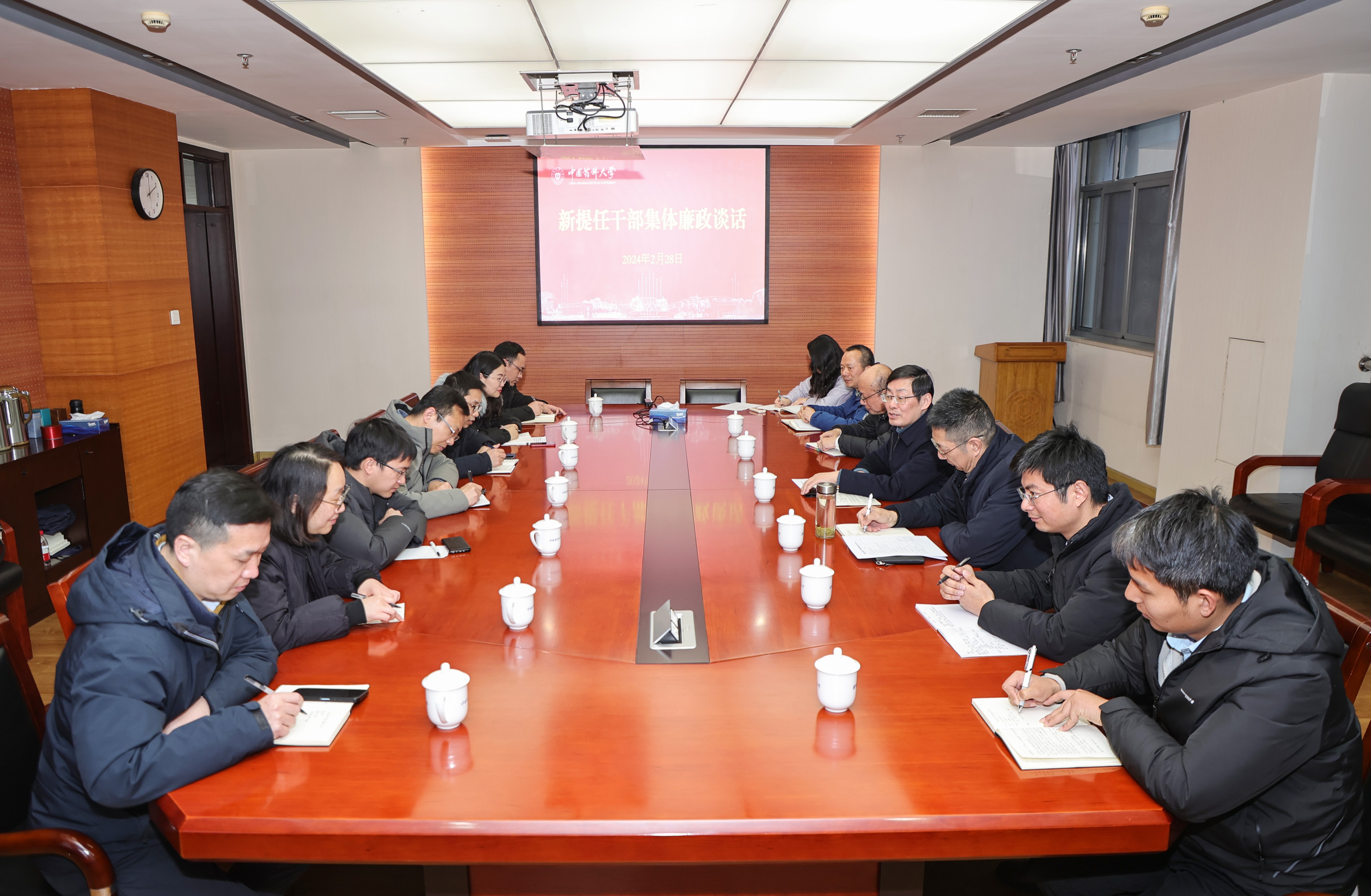 校党委副书记、纪委书记戴建君指出,集体廉政谈话是干部选任工作的重要程序,也是加强干部教育的重要方式,更是党组织关心关爱干部、促进担当作为的务实举措。他结合实际案例,对新任职干部提出四方面要求:一是要讲政治。政治标准是选人用人的第一标准,要深刻领悟“两个确立”的决定性意义,坚决做到“两个维护”。要严守政治纪律和政治规矩,涵养政治定力,自觉做政治上的明白人、老实人。二是要守廉洁。要加强党章党规党纪、法律法规和规章制度的学习,深入学习新修订的《中国共产党纪律处分条例》,时刻牢记红线不能碰、底线不能越。坚持秉公用权、依法用权、公开用权,自觉接受监督。三是要敢担当。要有想法、有路径、有成效,充分发挥自身所长,以实际工作成效助推学校各项事业高质量发展。要切实履行“一岗双责”,在抓好本职业务工作的同时,认真履行全面从严治党和党风廉政建设责任。四是要有方法。要身先士卒、做好表率,增强标杆意识、自觉走在前列。要讲究方式方法、突出工作质效、管好带好队伍,带头营造团结奋进、互相补台、合力攻坚的良好工作氛围。