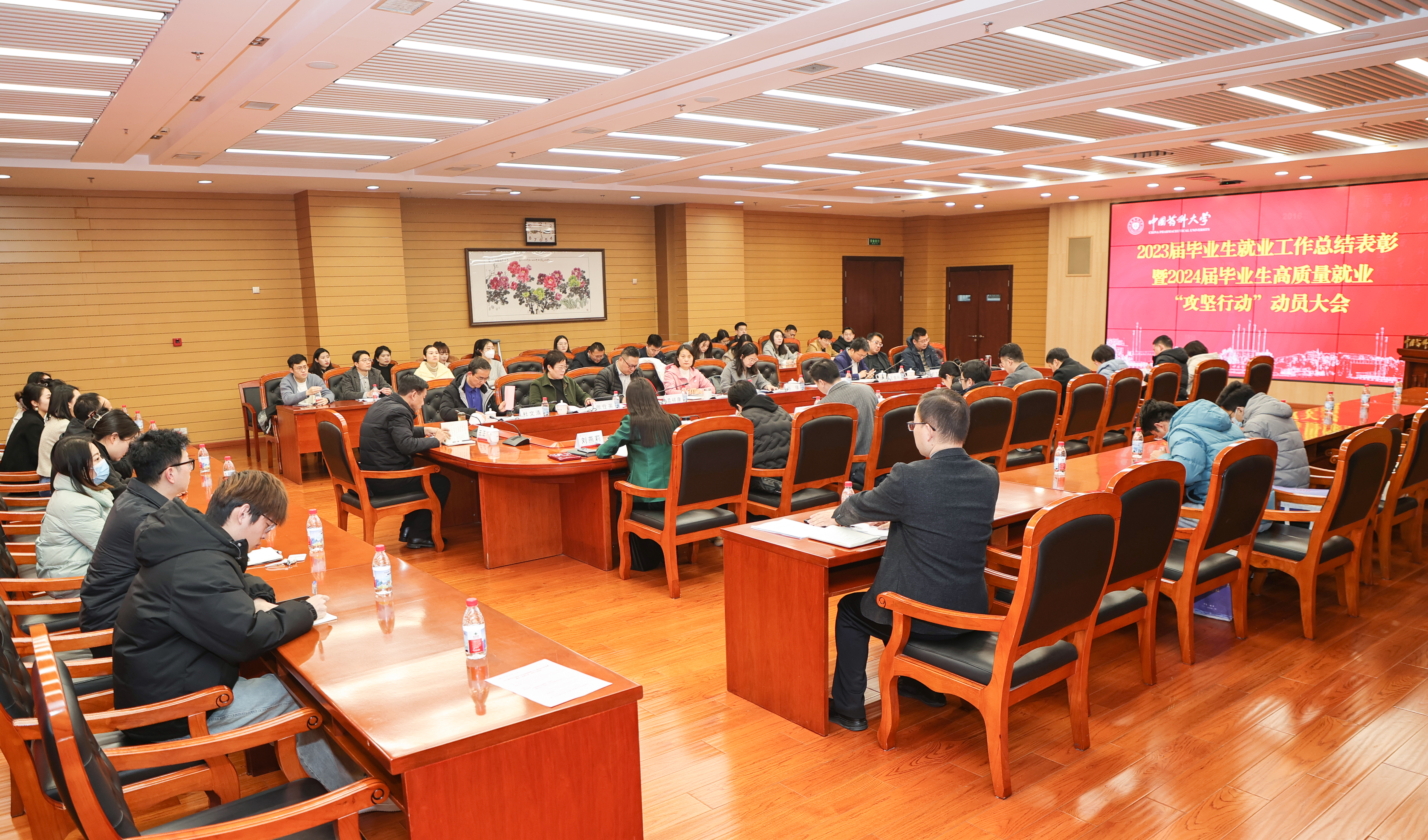校党委副书记、副校长王正华最后作2024届毕业生高质量就业“攻坚行动”动员讲话。他指出,就业是最大的民生工程、民心工程,事关社会和谐稳定、家庭幸福和学校声誉。全校上下必须抓紧抓实抓好这一工作。他对学校2023年就业工作所取得的成绩表示肯定,对相关职能部门、各学院以及就业工作战线老师们的辛勤付出表示感谢。他结合当前形势和学校实际,就开展2024年毕业生高质量就业攻坚工作提出具体要求:一是要提高政治站位,深刻认识形势,把就业工作摆在突出位置通盘考虑,早起步、早谋划、早推进,确保全年就业工作目标任务完成;二是要聚焦关键环节,多措并举推动,按照学校整体部署高效率落实,形成毕业生高质量就业的强大合力;三是要兜牢困难帮扶底线,强化精准施策,持续保持就业工作的热度和温度,用心用情用力帮助2024届毕业生及早顺利就业。