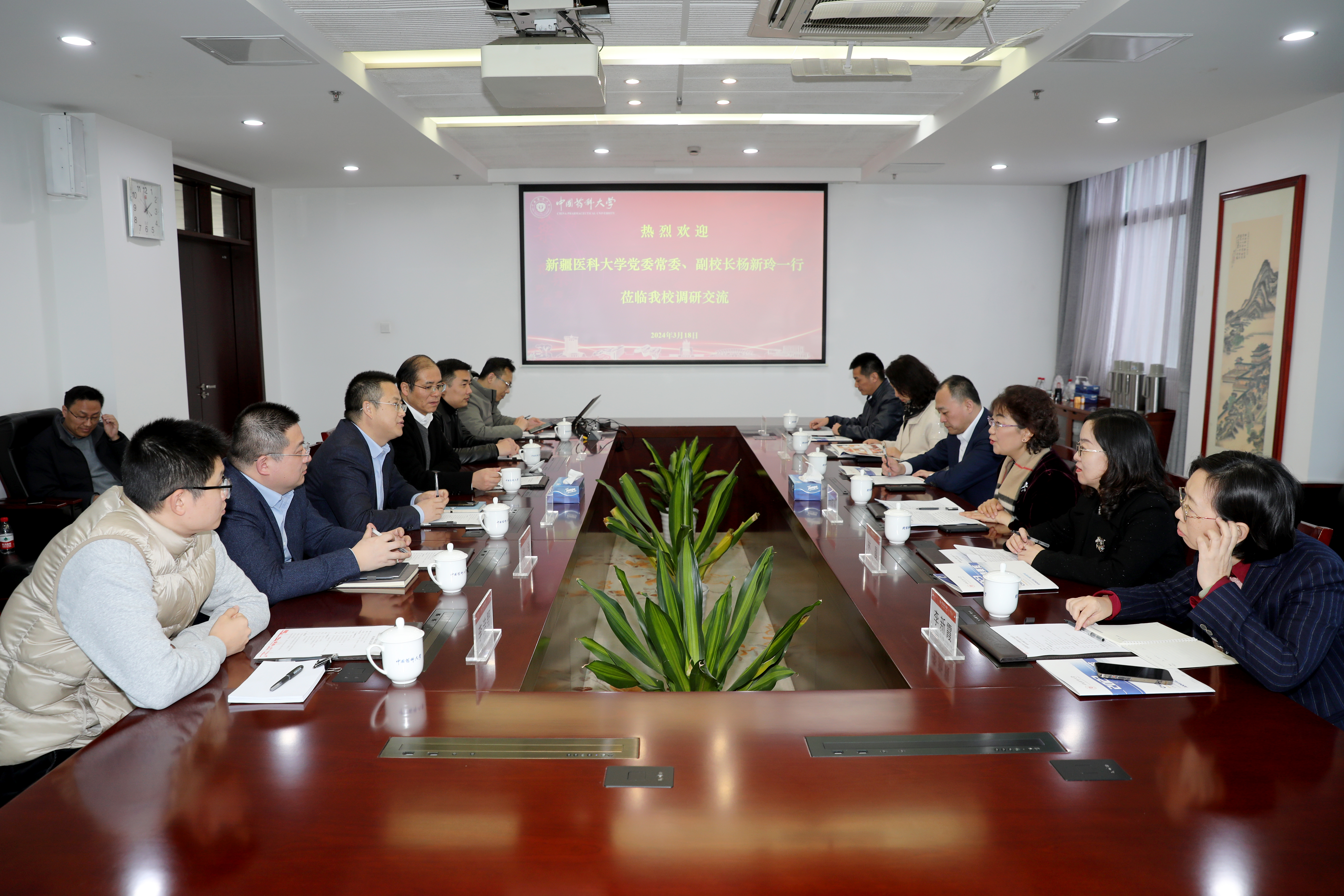 新疆医科大学副校长杨新玲介绍了新疆医科大学在教学科研、学科建设等方面的新进展新成绩,对beat365长期以来给予的真情帮扶以及援疆干部的无私奉献表示衷心的感谢,希望beat365继续在药学博士点建设、高层次人才引进、产学研合作等方面给予支持,帮助新疆医科大学实现新的突破。接着,双方就相关议题进行了深入交流。