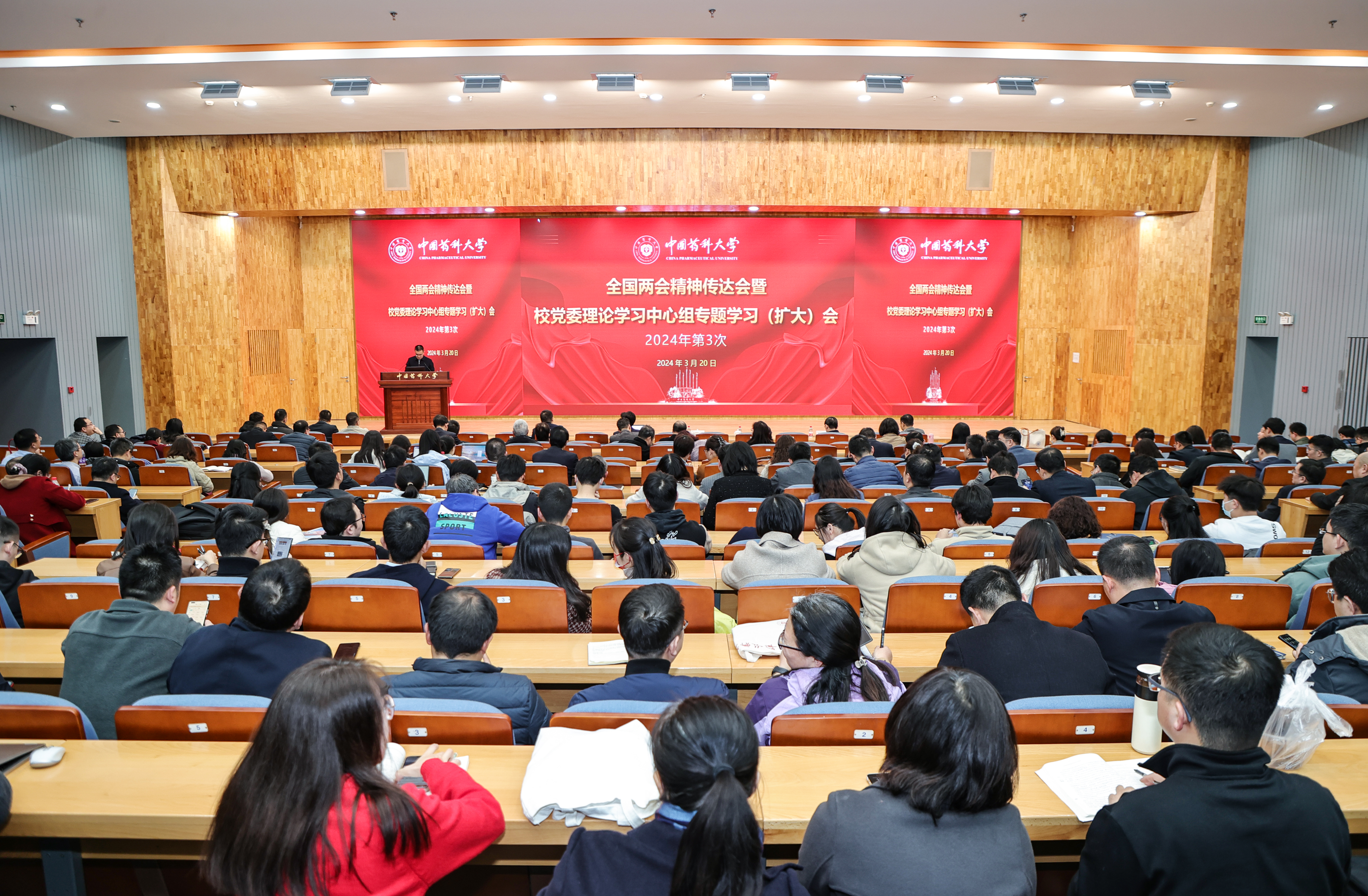 3月20日下午,beat365在江宁校区会议中心二楼报告厅召开2024年全国两会精神传达会暨校党委理论学习中心组第3次专题学习(扩大)会。校领导,校党委理论学习中心组成员,处级干部,各级人大代表、政协委员,民主党派负责人、无党派人士代表,教工党支部书记、马克思主义学院全体教师以及骨干教师代表等300余人参加会议。会议由校党委书记金能明主持。