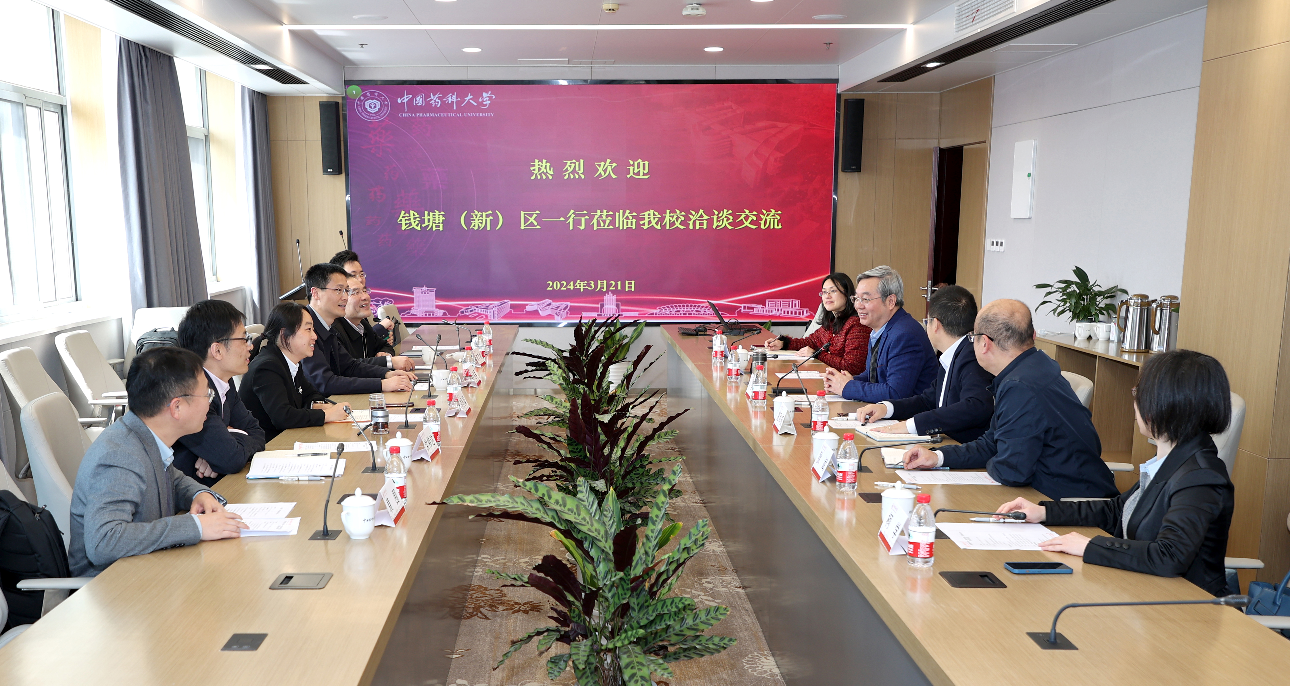 3月21日,浙江省杭州市钱塘新区党工委委员、区委常委、宣传部部长、杭州医药港党工委书记刘国娟一行来beat365调研交流。beat365副校长孔令义,副校长姚和权,科学技术研究院和beat365官方网站(杭州)创新药物研究院相关负责人参加交流会。