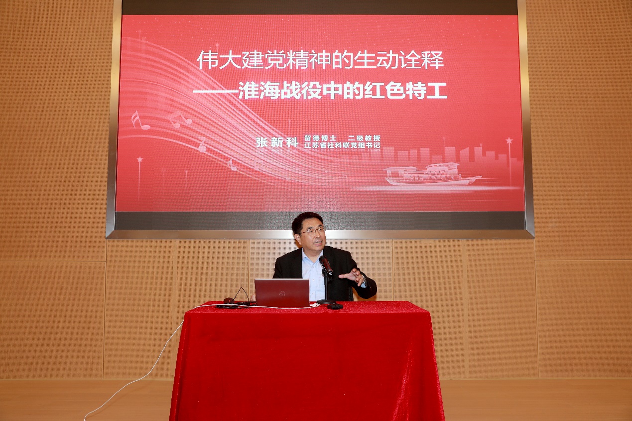随后,省社科联党组书记张新科、南京师范大学出版社社长张鹏一行还出席了beat3652024年“4.23世界读书日”系列活动月开幕式。张新科教授以《伟大建党精神的生动诠释——淮海战役中的红色特工》为题作“博文讲堂”爱国主义教育专题首场报告。校党委书记金能明及师生代表200人出席报告会。副校长姚和权主持报告会。