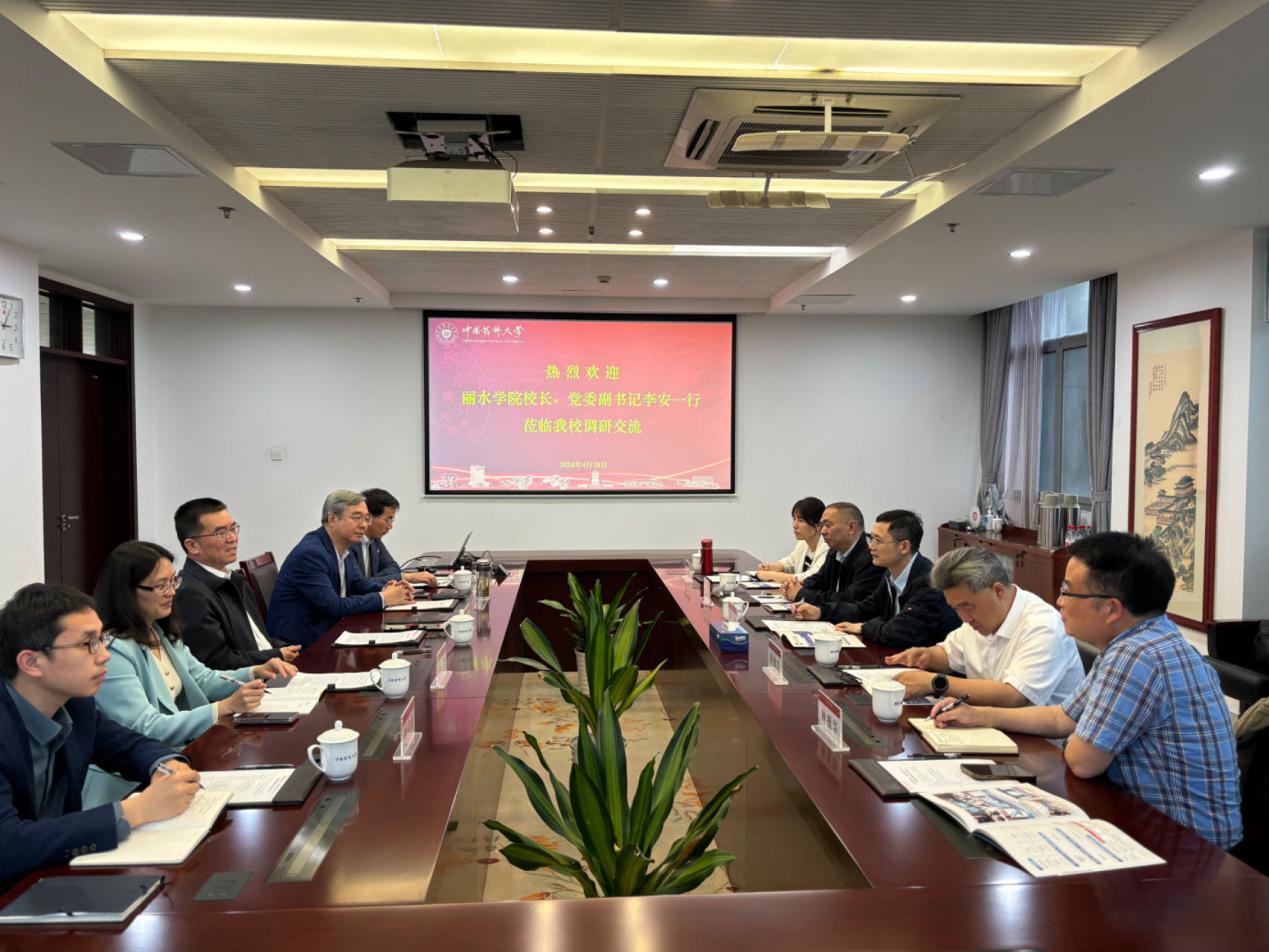 校党委书记金能明对李安校长一行来访表示诚挚欢迎。他表示,党的十八大以来,党和政府高度重视中医药事业发展,习近平总书记就中医药工作作出一系列重要论述和重要指示,为新时代中医药传承创新发展提供了根本遵循。他指出,丽水市中药材资源丰富,中药产业发展前景广阔。学校高度重视与丽水学院的战略合作,将继续全力支持丽水学院中医药与健康现代产业学院的建设发展。他希望,两校要进一步深化友谊,聚焦双方需求和专业优势,强化中药产业技术创新,推动各项合作细节落地落实落细,培养更多中医药产业应用型人才,促进中医药一、二、三产业协同发展。