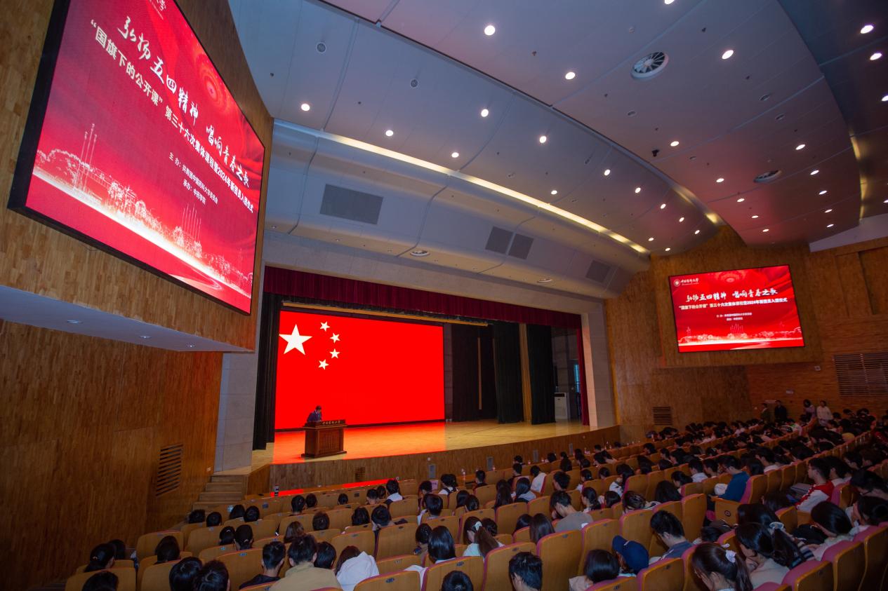 校党委副书记、副校长王正华以《弘扬五四精神,勇担青春使命》为题讲授国旗下的公开课。他向全体新团员表示祝贺,向全校青年致以节日的问候。他勉励广大青年要坚持人民至上、坚持自信自立、坚持守正创新,更加紧密地团结在以习近平同志为核心的党中央周围,增强“四个意识”、坚定“四个自信”、做到“两个维护”,听党话、跟党走,大力弘扬五四精神,共同肩负时代责任,共同创造属于青年的时代伟业,在实现中华民族伟大复兴中国梦、医药强国梦和beat365官方网站百年发展梦的新征程上书写beat365官方网站青年壮丽的青春篇章。