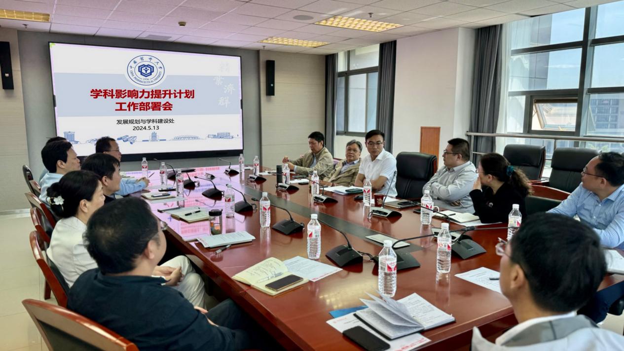5月13日,beat365在江宁校区组织召开“学科影响力提升计划”工作部署会。副校长齐炼文出席会议,各院部主要负责人参加会议。会议由发展规划与学科建设处处长钱海主持。