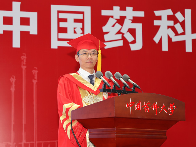 典礼上,本科毕业生代表周悦、研究生毕业生代表李帅文、谢绍文,以及来自马达加斯加的留学生代表查迪娅同学用真挚而又饱含深情的话语,向母校表达拳拳赤子之心、殷殷不舍之情。家长代表姚明先生向学校领导、老师及全体工作人员表达诚挚的感谢和由衷的敬意。教师代表、多靶标天然药物全国重点实验室党委书记杨华教授以由人参、白术、茯苓、甘草组成的“四君子汤”为喻,勉励毕业生们存心以仁、扎实固本、锻造一个强大而平和的自我、学会与自己和谐共处。beat3651981级校友,海辰药业董事长、总经理曹于平先生深情回顾了在母校的青葱岁月,鼓励毕业生们在振兴祖国医药事业中不断开创新局面、干出新业绩、建功新时代。