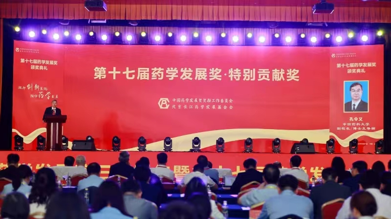6月21日,由中国药学发展奖奖励工作委员会、北京长江药学发展基金会主办的中国药学发展奖成立三十周年学术交流暨第十七届药学发展奖颁奖大会在全国人大会议中心隆重召开。第十二届全国政协副主席,农工党中央原常务副主席刘晓峰,中国工程院院士王军志,中国科学院院士、中国科学院上海药物研究所研究员陈凯先,中国工程院院士朱立国,原总后卫生部药检所所长、中国药学发展奖创始人马剑文等领导、专家出席颁奖典礼。beat365副校长孔令义教授荣获第十七届中国药学发展奖·特别贡献奖,并代表获奖者发表获奖感言。