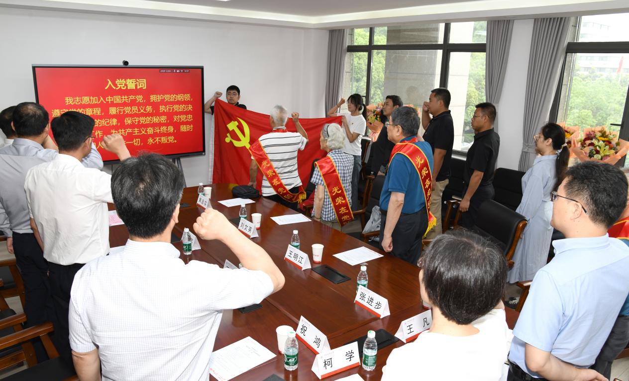 仪式最后,全体党员面向鲜红的党旗,重温入党誓词,用铮铮誓词宣示对党和人民作出的庄严承诺。仪式后,党委组织部和离退休党工委还走访慰问未能到现场参加仪式的周锦祥、巢中和、夏少杰、曹学群等4位老党员,并为他们送去纪念章。