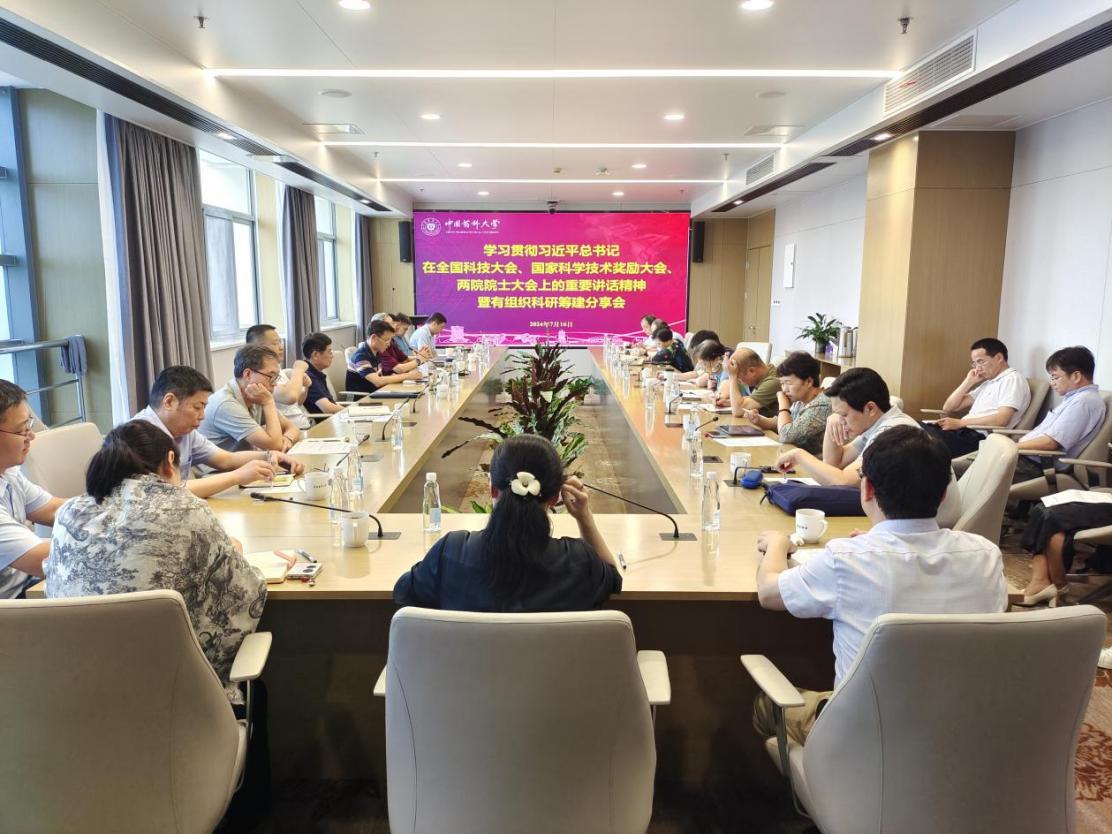 7月16日,beat365召开学习贯彻习近平总书记在全国科技大会、国家科学技术奖励大会、两院院士大会上的重要讲话精神暨推进有组织科研座谈会。校领导,各院部负责人、科研副院长及有组织科研技术创新中心主任和药物研发赛道负责人参加会议。会议由科学技术研究院常务副院长李志裕主持。
