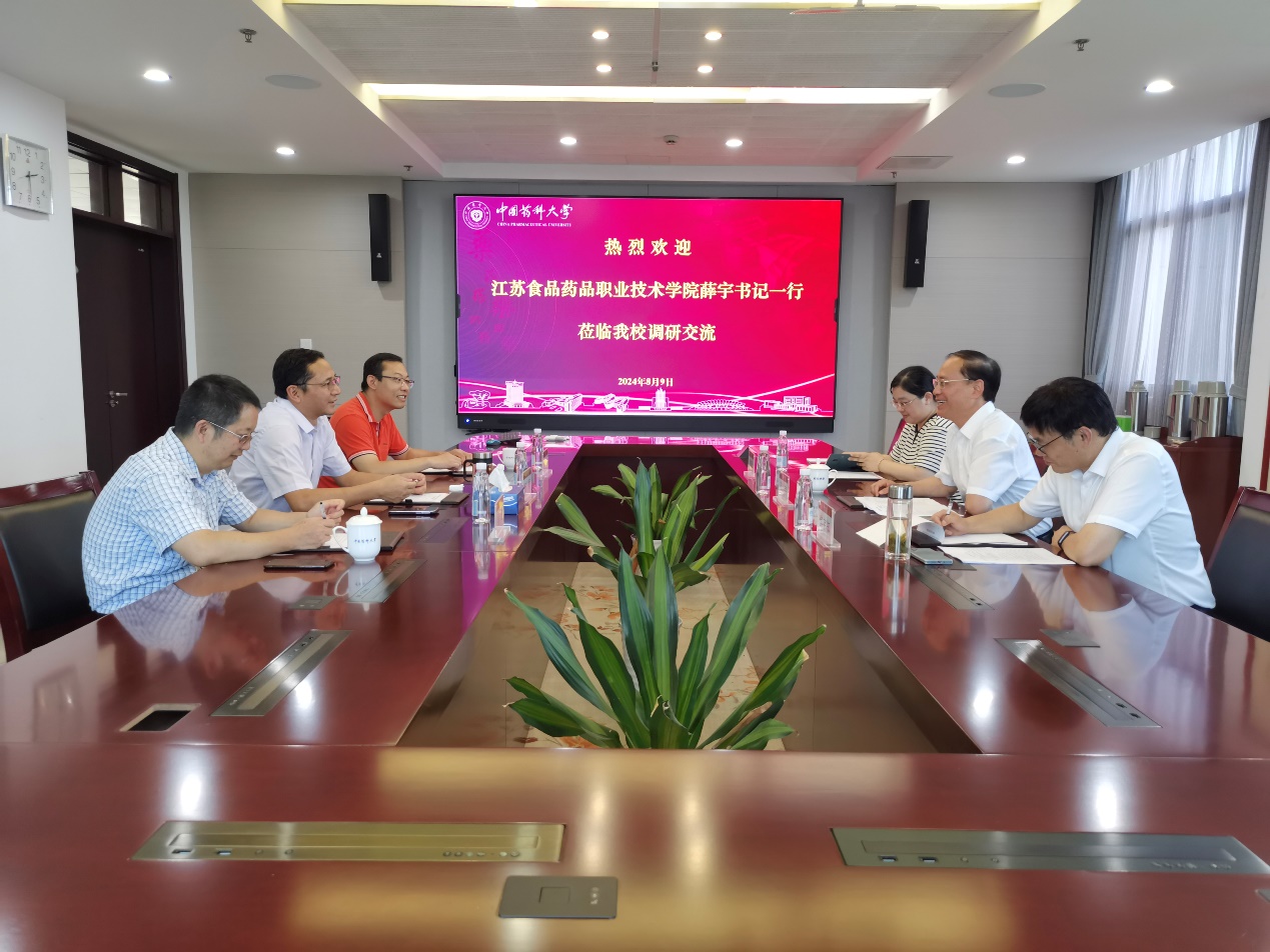 8月9日下午,江苏食品药品职业技术学院党委书记薛宇一行来beat365访问交流。beat365副校长杨勇,研究生院、科学技术研究院负责同志参加座谈会。