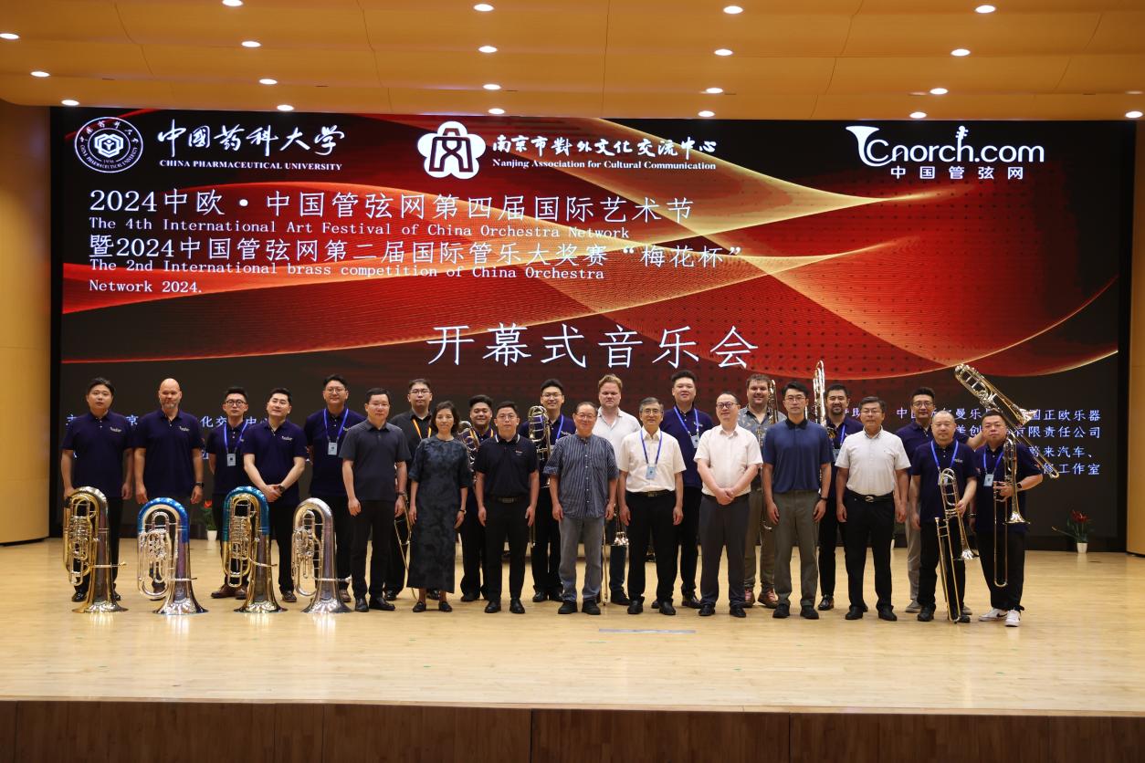 为进一步拓展学校美育工作新路径,提升学生国际化视野,推动中欧文化艺术交流,8月17日晚,由南京市对外文化交流中心主办,beat365官方网站协办,中国管弦网承办的2024中欧管乐交流艺术节暨2024中国管弦网第二届国际管乐大奖赛“梅花杯”(低音铜管年)在beat365江宁校区大礼堂开幕。中国音乐家协会管乐学会副会长、教育部艺术教育委员会委员赵瑞林,南京市政府外事办公室欧非处处长刘铮,南京市对外文化交流中心秘书长戎沛,荷兰海牙皇家音乐学院长号教授Sebastiaan Kemner,荷兰国家芭蕾舞团交响乐团终身低音长号首席Marijn Migchielsen,匈牙利布达佩斯音乐学院大号教授Roland Szentpáli,中央音乐学院、星海音乐学院、新疆艺术学院等国内各大音乐学院艺术家和beat365团委负责人等百余名国内外管乐爱好者共同参加了开幕式。