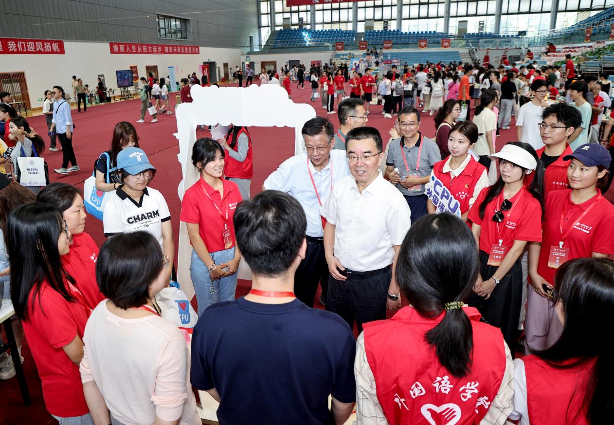 上午,校党委书记金能明、校长郝海平在校党委副书记、副校长王正华及相关部门领导陪同下来到新生报到现场,慰问各相关部门、各学院迎新工作人员,与新生及家长亲切交流,了解报到情况。校领导鼓励新生珍惜大学时光,努力学习,注重身心健康,实现全面发展,早日成为对社会有用的栋梁之才。随后,校长郝海平还到新生宿舍走访慰问。