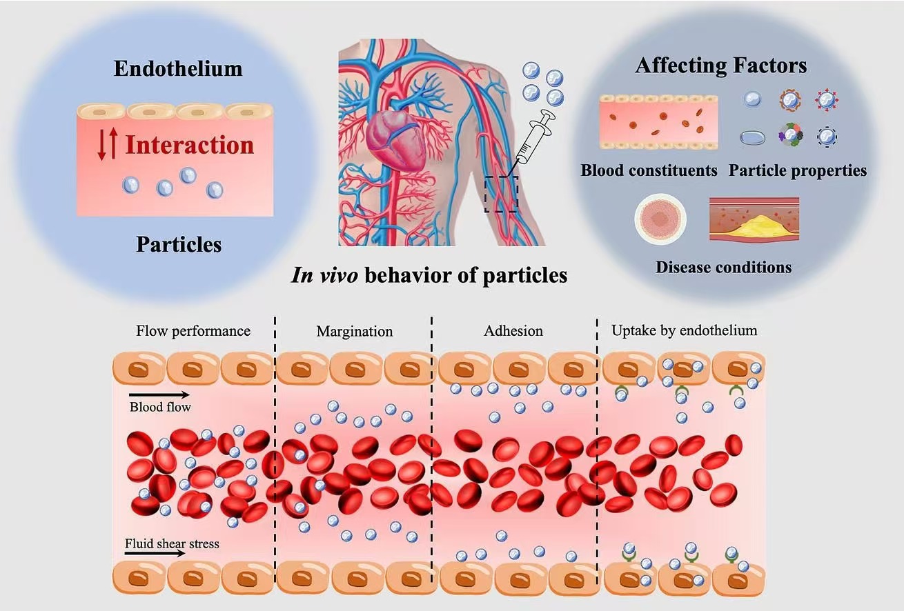 基于纳米粒的药物递送系统在人类疾病治疗中显示出很大的应用潜力。然而,人们对药物粒子与血管内皮相互作用的认知缺陷,导致纳米药物无法被纳入主流临床应用。纳米/微米颗粒在血液中的流动性受到血液成分、颗粒性质、内皮细胞活性等多种内外因素的干扰,这些干扰会影响颗粒在体内的命运和对疾病的治疗效果。