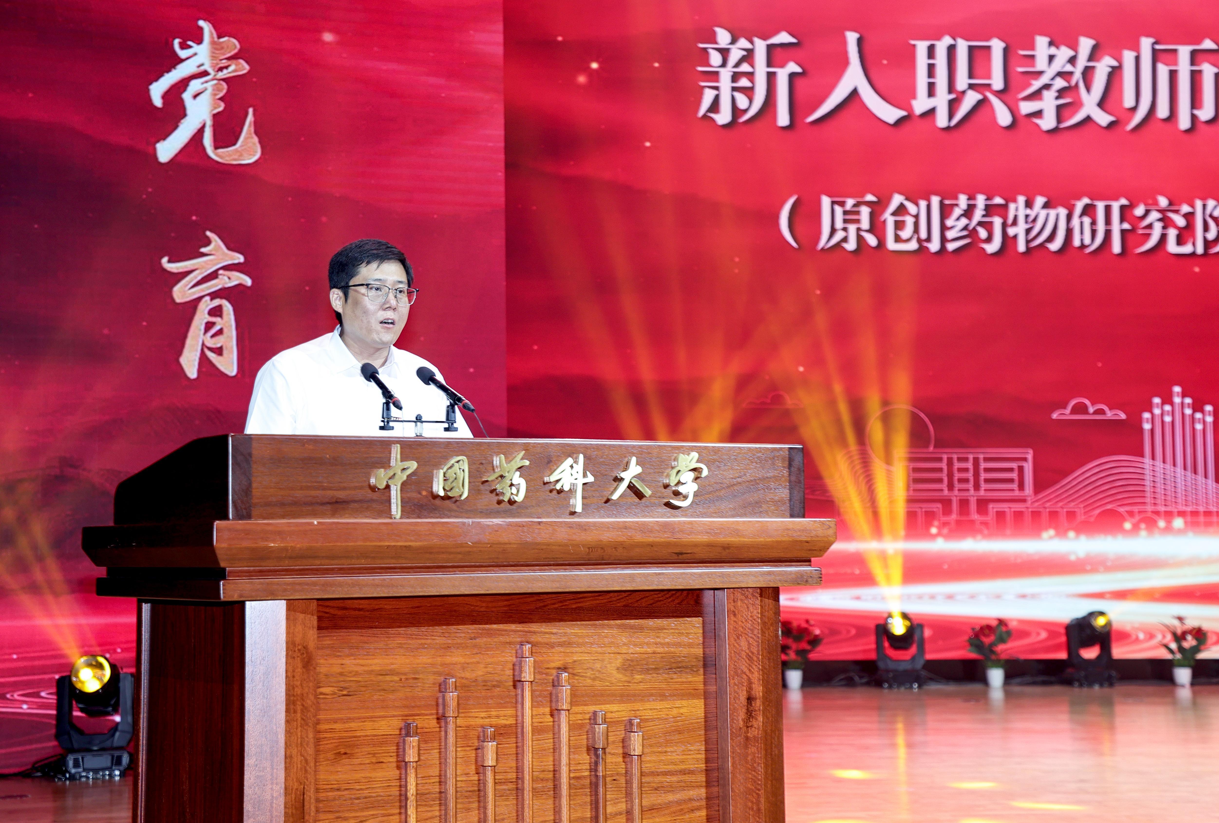 在第三篇章“向未来”环节中,会场以视频形式展示了近年来beat365师资队伍建设取得的成就。国家杰出青年科学基金获得者、优秀教师代表药学院杨鹏教授在发言中表达了对学校支持和培养、对老一辈教师悉心指点的感激之情,立志成为“教育强国、beat365何为”的答卷人和践行者。随后,校党委书记金能明、校长郝海平分别为新入职教师代表颁发校徽礼盒。原创药物研究院魏强教授作为新入职教师代表发言,他阐述了对传道授业解惑责任的理解,表达了牢记使命、追求卓越、回报学校的坚定决心。