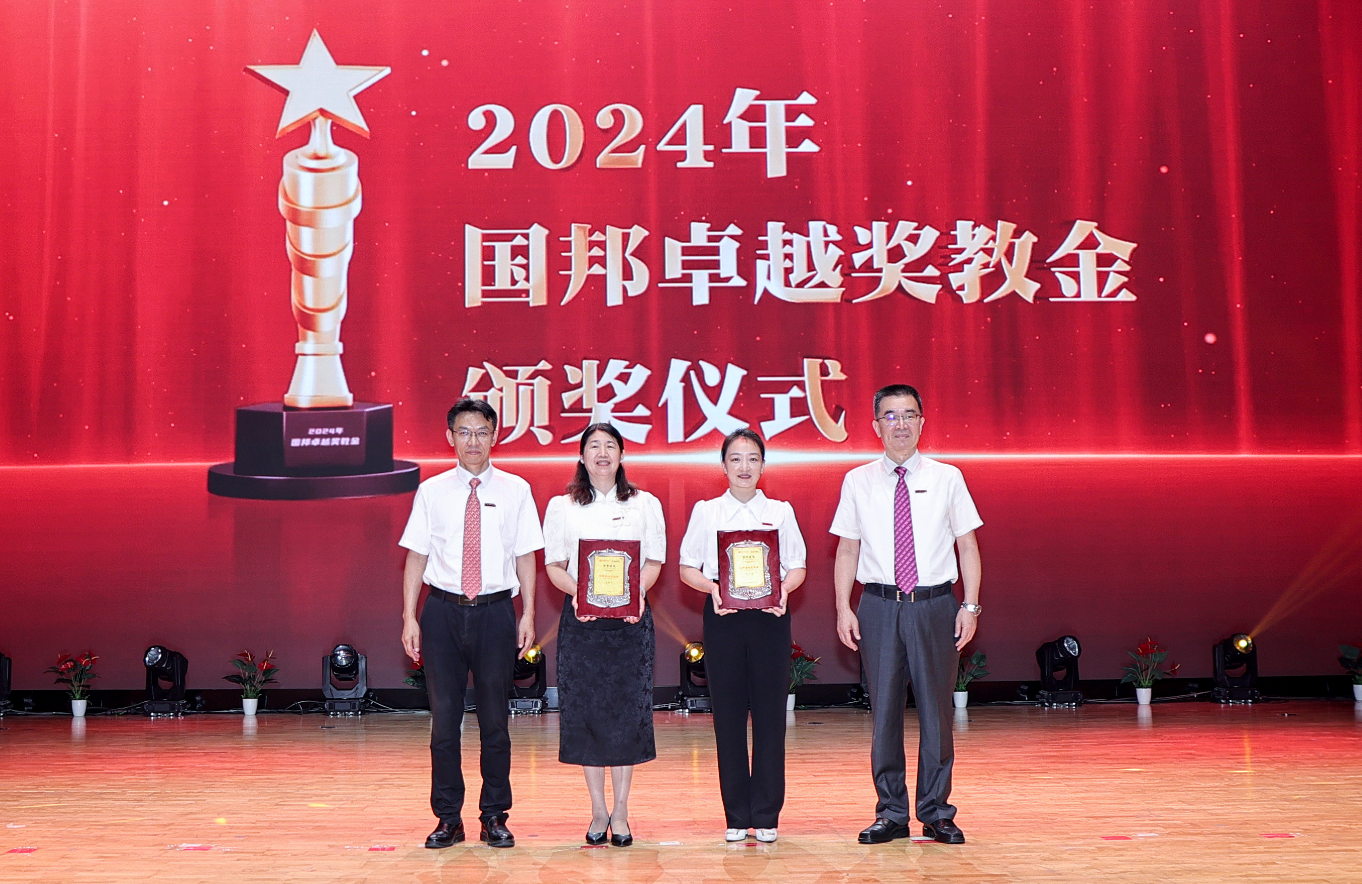国邦医药集团股份有限公司董事长邱家军为国邦卓越奖教金获得者颁奖