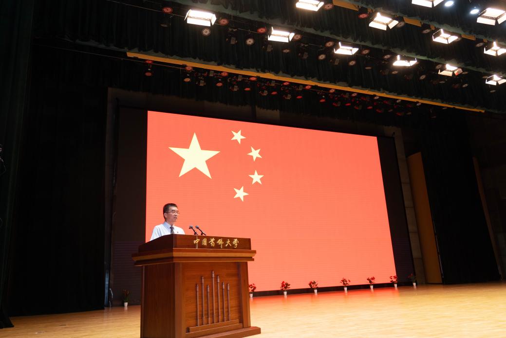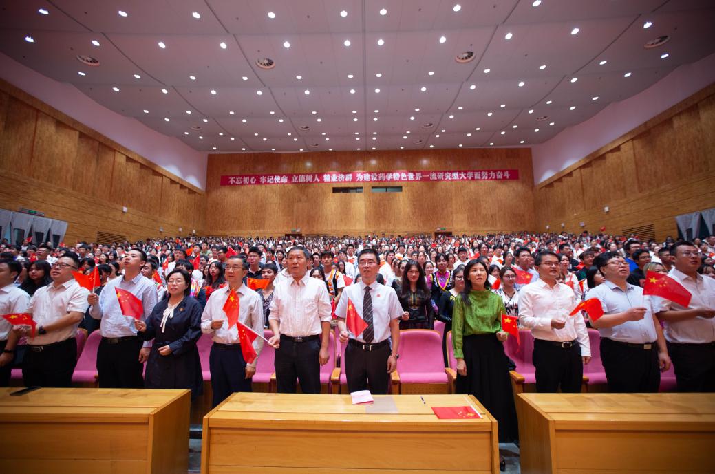 校党委书记金能明讲授国旗下的公开课。他代表学校向伟大祖国送上最美好的祝福。金能明书记从“新中国奠定强国之基,新道路开辟复兴伟业”切入,带领大家深刻回顾了新中国成立75年来,特别是党的十八大以来,在以习近平同志为核心的党中央坚强领导下我国全面推进中华民族伟大复兴取得的伟大成就。他从“救国必先兴教,强国必先强教”“保健民族任重,志在起废振癃”“锻造时代新人,堪当复兴重任”三个方面讲述了beat365官方网站在时代发展中的历史使命与担当作为。金书记同时向全体beat365官方网站学子提出三点期望,一是永葆爱国报国之心,忠于祖国,忠于人民。要磨炼意志品质,掌握过硬本领,在实现中国式现代化的新征程上作出应有的贡献。二是怀揣强国复兴之梦,勇于追梦,勤于圆梦。要感应时代脉搏,把对祖国血浓于水、与人民同呼吸共命运的情感贯穿到学业事业全过程。三是勇担健康中国使命,精业济群,兴药为民。在科教兴国、人才强国、健康中国事业中展现青春风采。