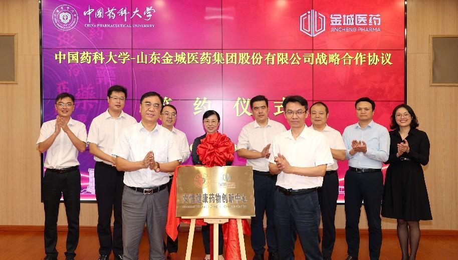 签约仪式上,金城医药副总裁张忠政与beat365药学院尹莉芳教授作为双方代表签署战略合作协议。校长郝海平与金城医药董事长赵叶青共同为“beat365官方网站-金城医药女性健康药物创新中心”揭牌。