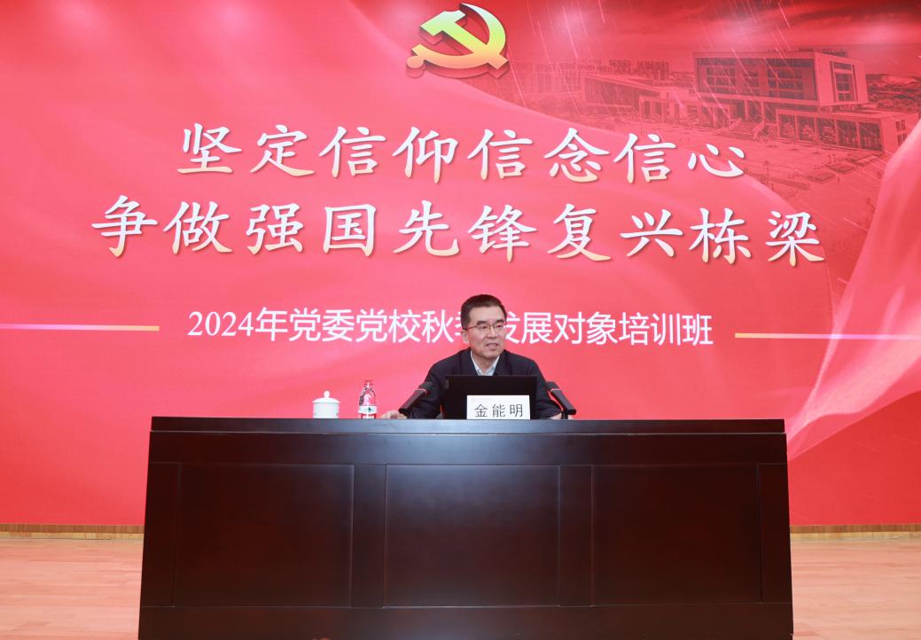 为深入学习贯彻习近平新时代中国特色社会主义思想、党的二十届三中全会和全国教育大会精神,严格把好发展党员“入口关”,加强发展对象党性教育、提升学校党员发展质量,10月30日,校党委党校在江宁校区举办2024年第二期发展对象培训班。校党委书记金能明出席开班式,党委办公室、党委组织部、教师工作部、学生工作部(研工部)、校团委等有关部门和相关学院党组织负责人参加开班式。来自全校各学院、机关部门的教职工和学生发展对象共计265人参加本次培训,开班式由校党委副书记朱红主持。