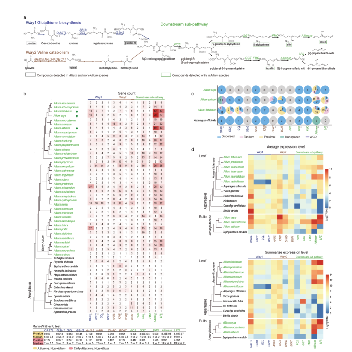 葱属硫化物生物合成相关基因的拷贝数和表达水平
