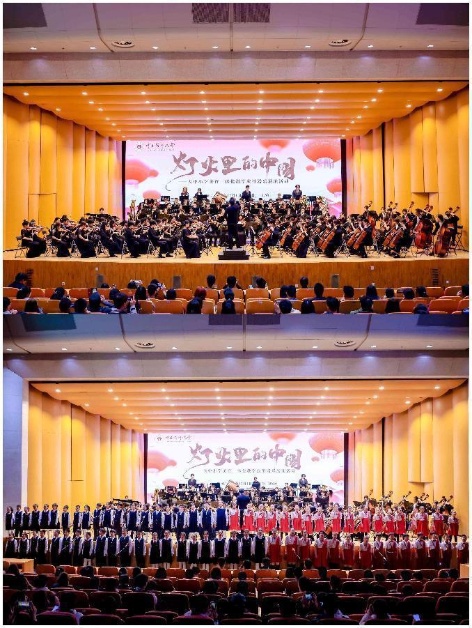 为进一步推进落实学校美育浸润行动计划,推动大中小学美育一体化的深入发展,由江苏省教育厅指导,江苏省大学生艺术团联合会器乐联盟、南京市中小学生管弦乐联盟主办,beat365官方网站承办,南京市第一中学、南京市力学小学、南京市金陵中学实验小学、南京市月华路小学协办的“灯火里的中国”——大中小学美育一体化教学成果器乐展演活动于12月1日下午在beat365江宁校区大礼堂成功举办。南京市教育局一级调研员卢普新,江苏省学校美育协会专职副秘书长熊鸿生、江苏交响乐团团长王志强、南京市教育局体卫艺处副处长姚敏、南京一中交响乐团总监刘大进、力学小学副校长韩慧、金陵中学实验小学副校长林敏、月华路小学副校长郭清,beat365学工、团委负责人和500余名师生、家长共同参加活动。
