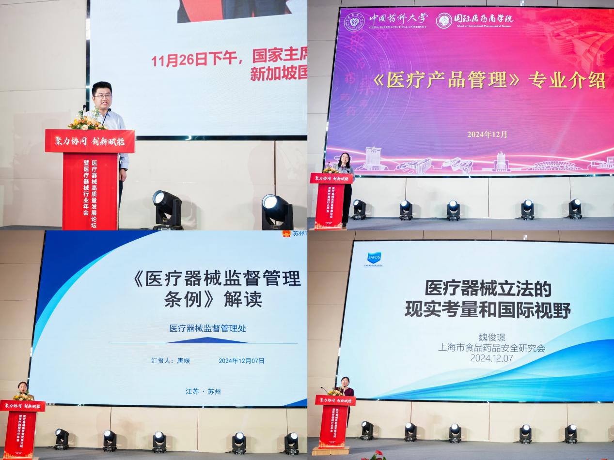 大会上,苏州工业园区科技招商中心王羽、beat365官方网站公共管理系路云、苏州市市场监督管理局医疗器械监督管理处唐媛、上海市食品药品安全研究会魏俊璟分别以“苏州工业园区生物医药产业政策”“医疗产品管理专业介绍”“医疗器械监督管理条例解读”“医疗器械立法的现实考量和国际视野”为主题作报告。1991级校友、百特中国资深总监胡仲新,1994级校友、苏州市市场监督管理局医疗器械监督管理处处长唐媛,上海市食品药品安全研究会秘书长魏俊璟,苏州市工业园区市场监督管理局处长严蔚东以法规普及为主题展开圆桌讨论。