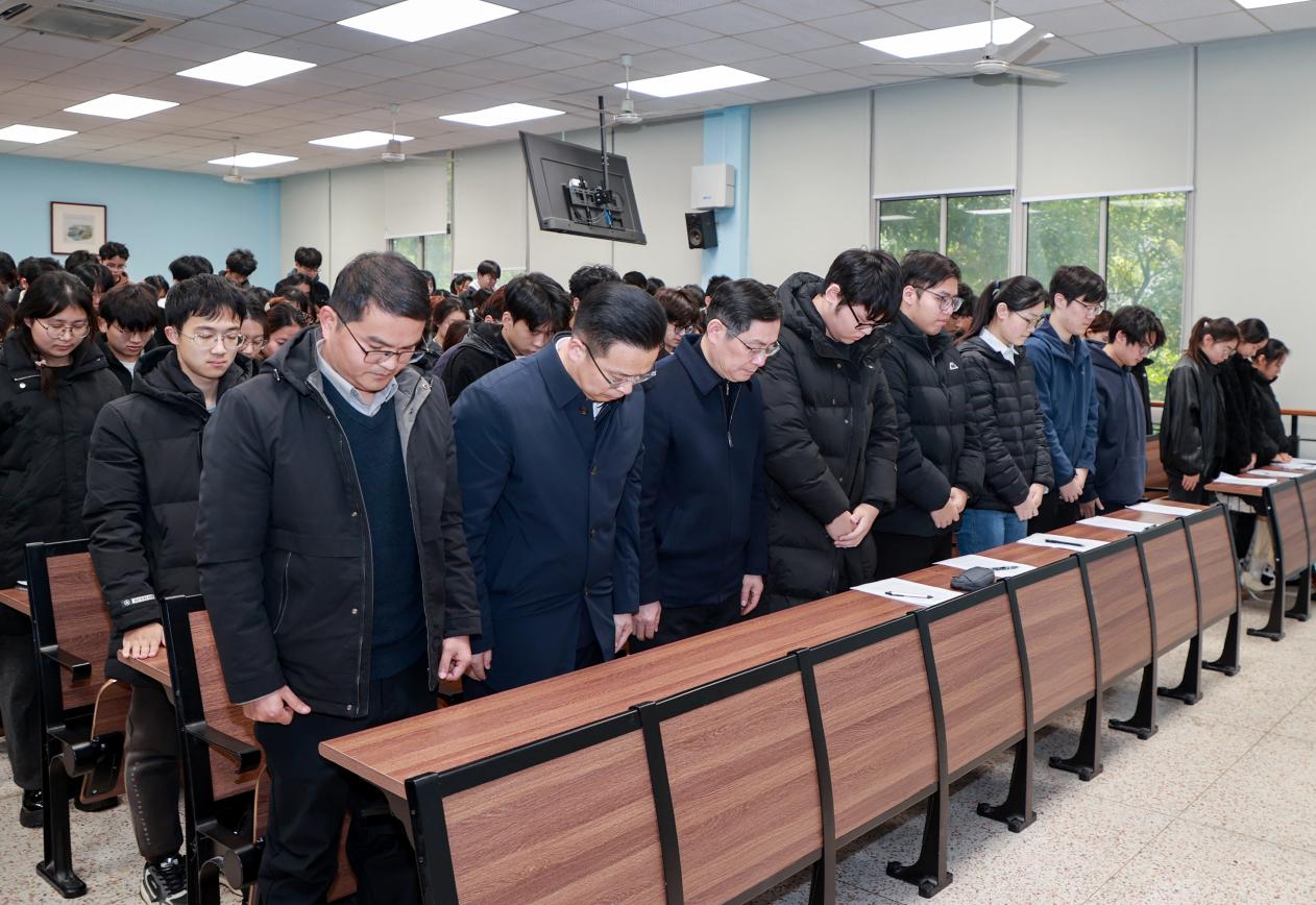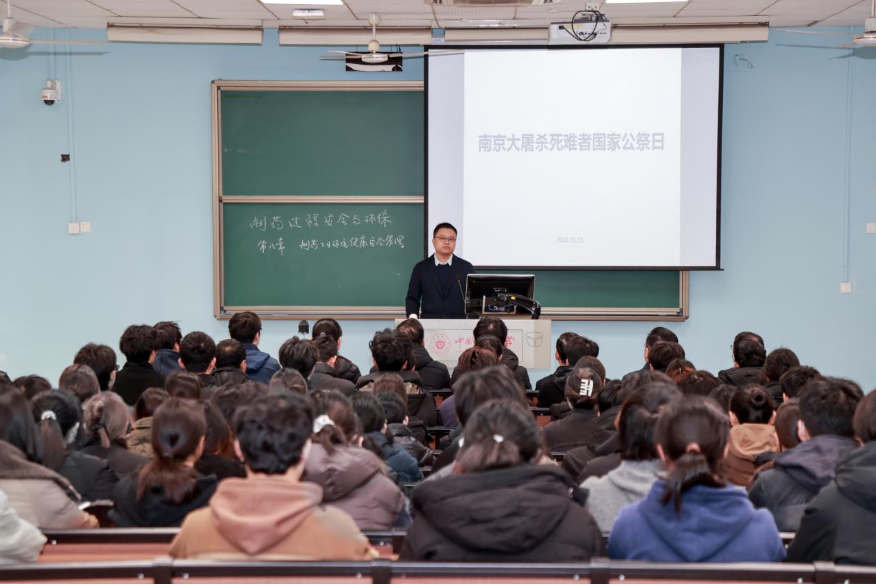 12月13日是南京大屠杀死难者国家公祭日。为悼念南京大屠杀死难者和所有惨遭日本侵略者杀戮的死难同胞,宣示牢记历史、不忘过去、珍爱和平、开创未来的坚定立场,今天上午,beat365以“课程思政三分钟”的形式,开展“南京大屠杀死难者国家公祭日”悼念活动。校党委书记戴建君走进课堂与师生共同参加悼念活动。校党委常委、宣传部部长陈卫忠,党委办公室主任韩守兴,教务处处长孙敏捷等陪同参加。