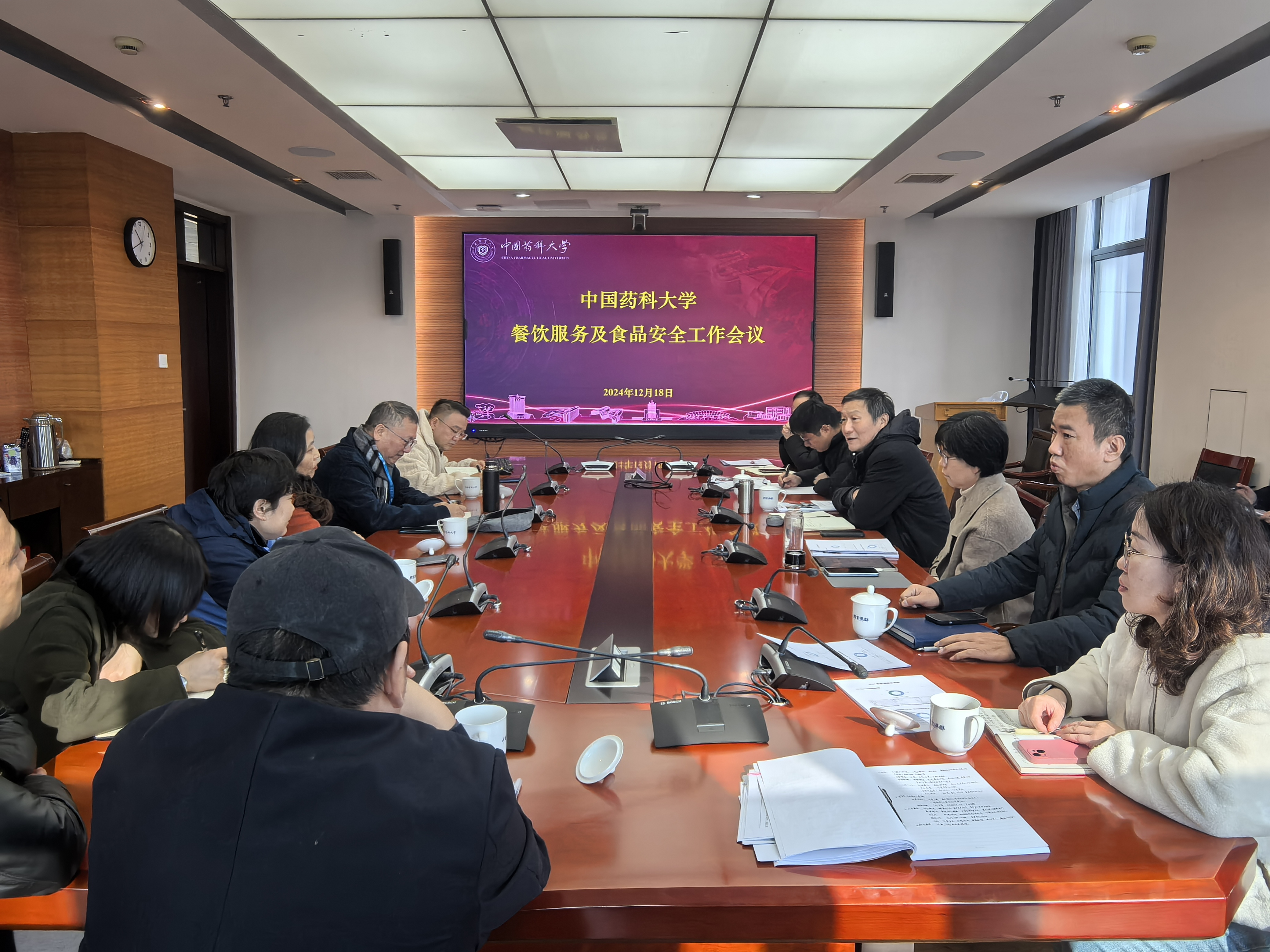 为持续提升餐饮服务质量和安全管理水平,12月18日上午,beat365召开2024年度餐饮服务和食品安全工作会议。校党委常委、副校长、学校食品安全总监袁浩,学校基建后勤处、后勤集团部门负责人,学校食品安全员,食品安全第三方监管单位、餐饮服务单位负责人参加了会议。