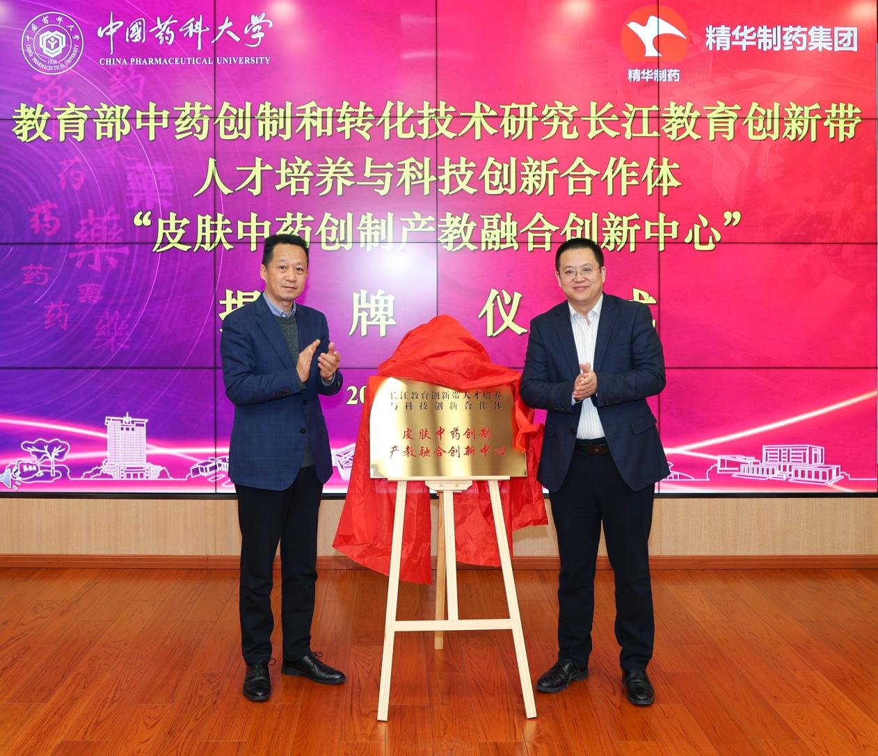 签约仪式上,精华制药集团股份有限公司总工、研究管理院院长周云中与beat365中药学院院长许风国共同签署了战略合作协议。校长郝海平和精华制药董事长尹红宇共同为“beat365官方网站-精华制药集团股份有限公司‘季德胜研究院’”揭牌。beat365副校长姚和权与江苏省卫健委二级巡视员、中医科教处处长石志宇共同为“教育部中药创制和转化技术研究长江教育创新带人才培养与科技创新合作体‘皮肤中药创制产教融合创新中心’”揭牌。