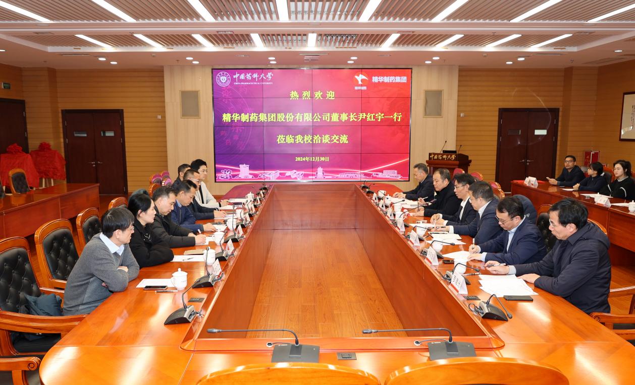 校长郝海平对江苏省卫健委二级巡视员、中医科教处处长石志宇及精华制药集团股份有限公司党委书记、董事长尹红宇一行的到来表示热烈欢迎。他简要介绍了学校有组织科研的布局及开展情况。他表示,在生物医药产业全球化变革的背景下,学校正着手于强化探索新型校企合作模式,希望双方以此次战略合作为契机,以合作项目为纽带,围绕中药新药的创制开发,加强校企深度融合,共同为中医药产业发展作出积极贡献。