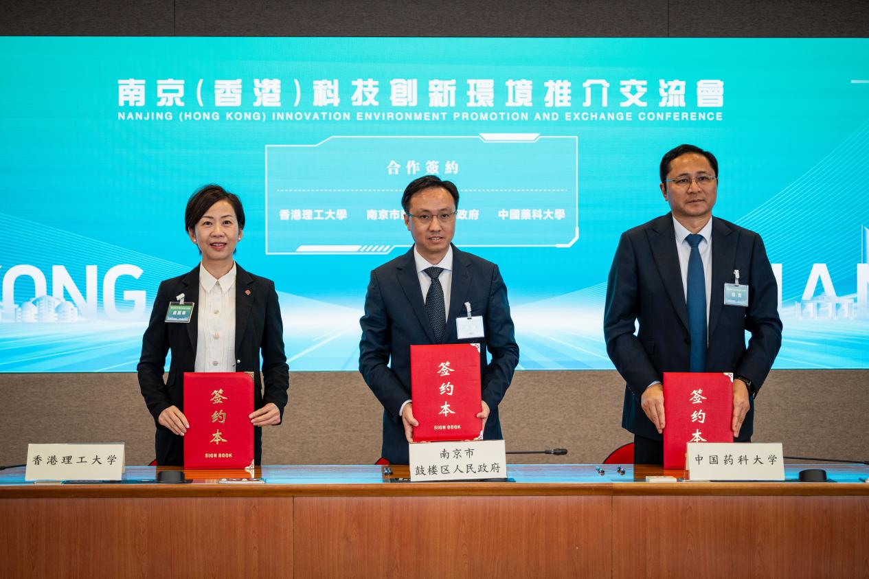 17日,副校长杨勇陪同南京市市长陈之常,香港理工大学校董事会主席林大辉、校长滕锦光参观了香港理工大学眼科视光学实验室、深空探测研究中心(全国重点实验室),并出席南京(香港)科技创新环境推介交流会。会上,副校长杨勇代表beat365与香港理工大学、南京市鼓楼区政府共同签署了三方合作备忘录,通过共享两地优势、协同创新,共同打造高水平的科技创新平台与高效的成果转化体系。