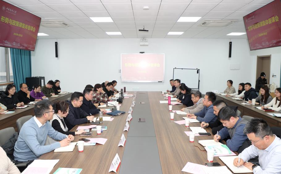 为深入学习贯彻习近平新时代中国特色社会主义思想,推动党的创新理论进教材、进课堂、进头脑,全面落实“大思政课”建设要求,全面提升“形势与政策”课教师教学能力和育人素质,3月5日下午,马克思主义学院在学院会议室举行2025年春季学期“形势与政策”课集体备课会。校党委书记戴建君,校党委副书记朱红,校党委常委、马克思主义学院党委书记、院长陈卫忠,教务处、学工处负责人,教学督导以及“形势与政策”课全体任课教师参加集体备课会。会议由马克思主义学院副院长董高伟主持。