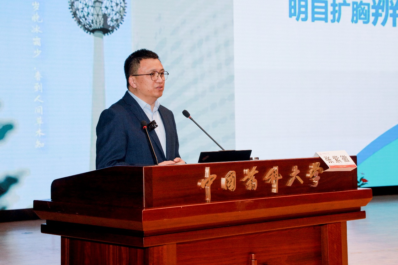 杨勇首先代表学校对两位专家的到来表示热烈欢迎,希望广大师生结合讲座内容深入思考,以医工交叉为纽带,探索人工智能与药学融合。