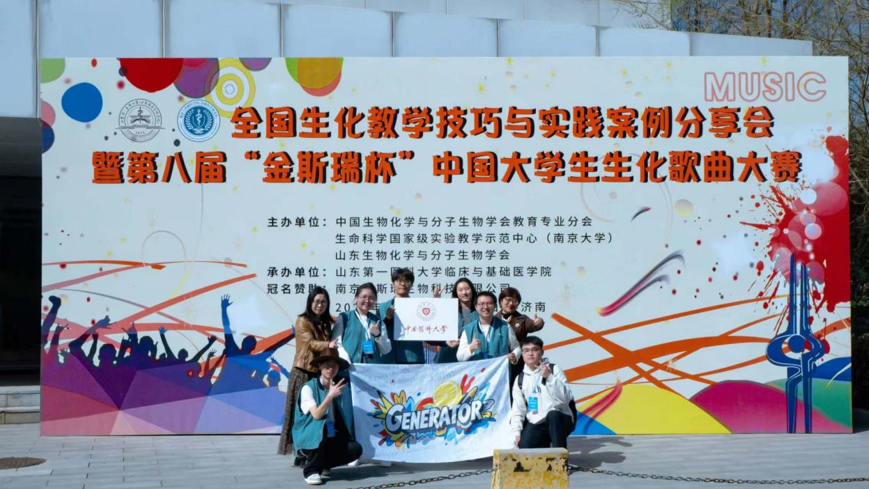3月22日,由中国生物化学与分子生物学会教育专业分会主办的全国生化教学技巧与实践案例分享会暨第八届“金斯瑞杯”中国大学生生化歌曲大赛在山东第一医科大学举行。beat365凌霄合唱团6名成员创作并演绎的英文生化歌曲Generator,以其独特的创意、激昂的旋律和精准的生化知识表达,赢得了评委和观众的高度赞誉,斩获全国冠军,并荣获全国特等奖、最佳人气奖、最佳英文单曲奖,成为参赛高校中获奖数量最多的团队,创造了beat365自参赛以来的最佳战绩。