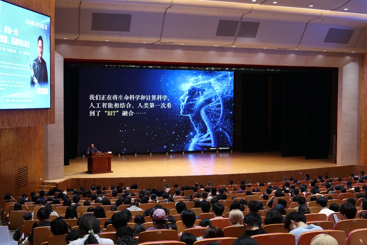 杨勇代表学校对尹烨的到来表示热烈欢迎,希望广大师生认真学习领悟讲座内容,在生物技术与数字智能深度融合的时代里深入思考、把握机遇、迎接挑战。