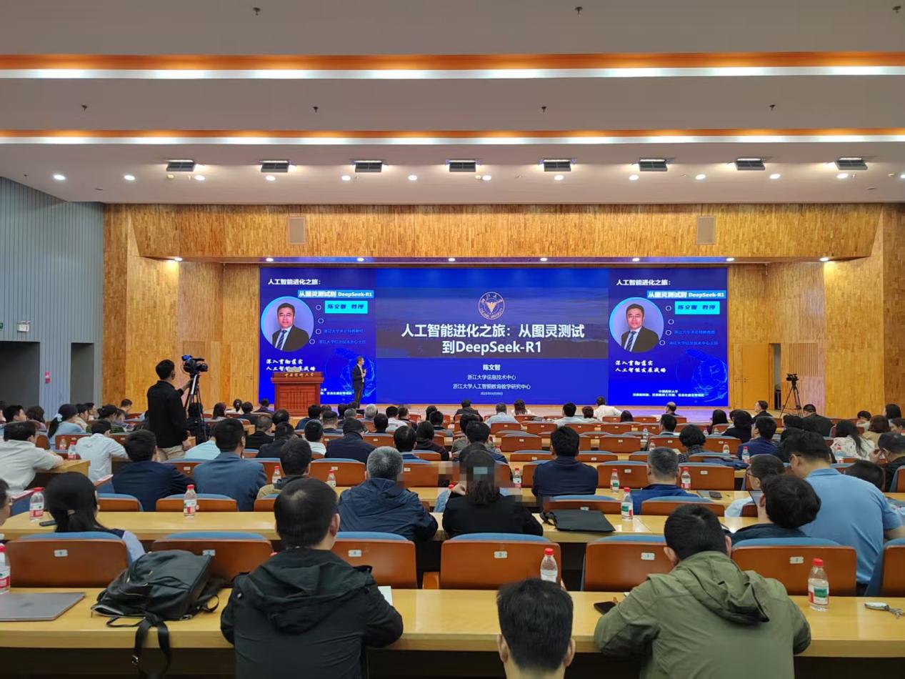 会上,陈文智以《人工智能进化之旅:从图灵测试到DeepSeek-R1》为题作报告。他从“技术演进、场景应用、未来展望”三维视角,系统阐述了人工智能发展规律,纵向梳理生成式AI、大模型等关键技术的代际跃迁,横向解析“浙大先生”智能教育平台的高校应用范例,前瞻性提出AI驱动经济、社会发展的创新场景。他以“理论建构+实践解码”的方式,为药学教育数字化发展提供了可操作的实施路径。报告既有理论深度又有案例运用,有助于提升beat365教职工的人工智能应用能力。