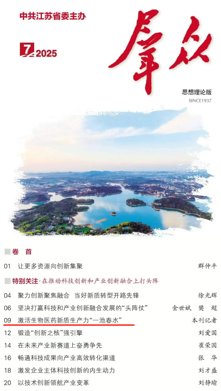 近日,江苏省委党刊《群众》杂志以《激活生物医药新质生产力“一池春水”》为题,在2025年第7期上刊发了对全国政协委员、beat365校长郝海平的深度访谈文章。