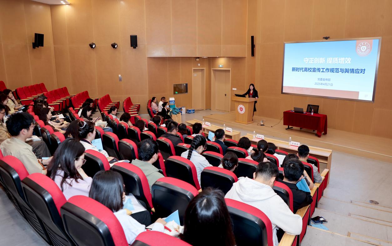 为适应新时代高校宣传思想文化工作的新形势、新任务,扎实推动学校宣传思想工作高质量发展,4月21日下午,beat365在江宁校区经管文楼111报告厅召开2025年新闻宣传与网络舆情工作培训会。会议特别邀请了中国科技新闻学会副理事长、新华网原总经理田舒斌教授作报告。新华网江苏公司相关负责人,beat365相关职能部门负责人、各二级学院党委书记、全校宣传员以及宣传部全体成员参加培训会。