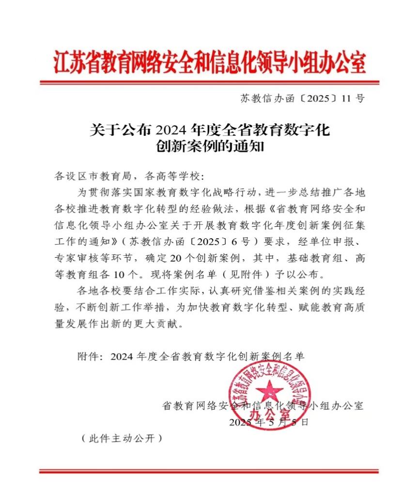 据悉,此次案例评选旨在贯彻落实国家教育数字化战略行动,加快推进教育数字化转型,赋能教育高质量发展。经单位申报、专家评审等多环节层层筛选,最终确定20个创新案例。其中,基础教育组、高等教育组各10个。