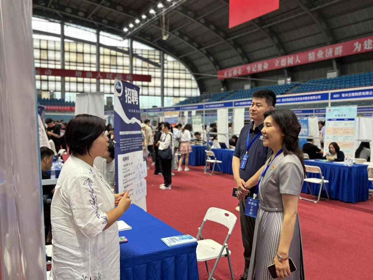 为积极响应党中央、国务院关于高校毕业生就业工作部署,抢抓毕业离校关键期统筹做好就业工作,6月11日,beat365在江宁校区体育馆举办 2025 届毕业生“百日冲刺促就业”专场招聘会,校党委副书记朱红深入招聘会现场走访用人单位。