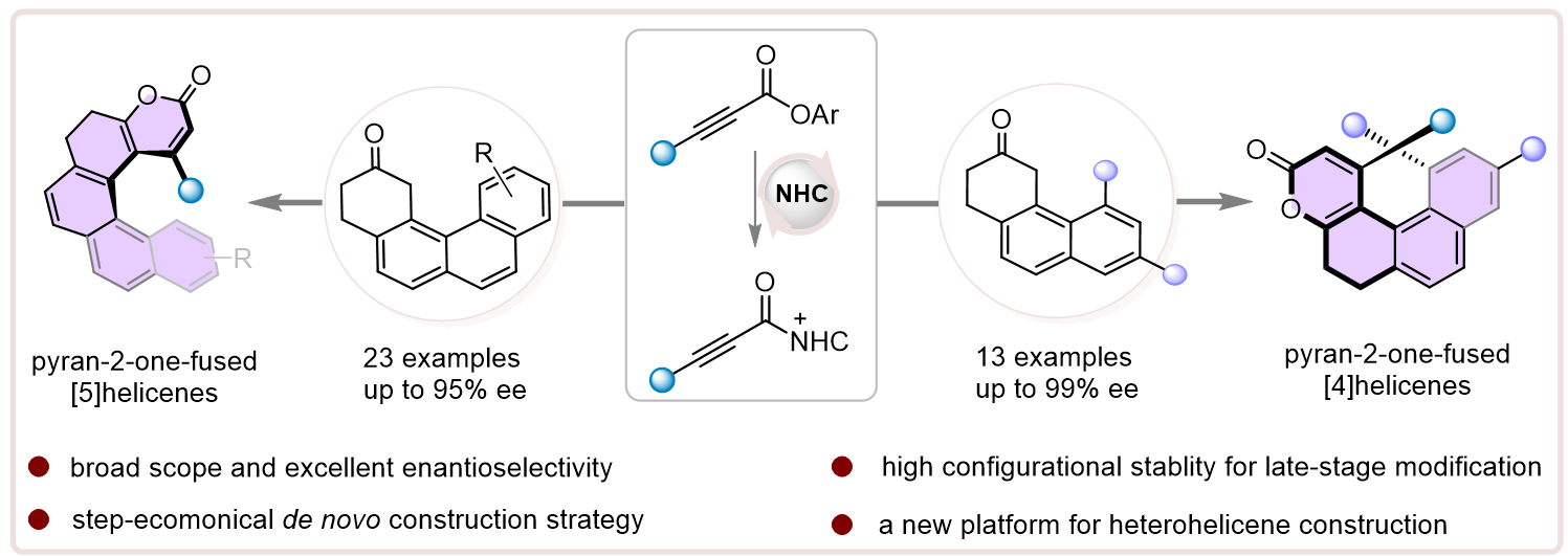 近日,beat365理学院杜鼎团队在权威期刊Angew Chem Int Ed上发表了题为“Enantioselective de novo Construction of Pyran-2-one-fused Helicenoids via NHC Organocatalysis”(Very Important Paper, VIP)的最新研究成果。理学院2023级硕士生黎晨星为论文第一作者,杜鼎教授为论文唯一通讯作者,beat365官方网站为论文完成单位。
