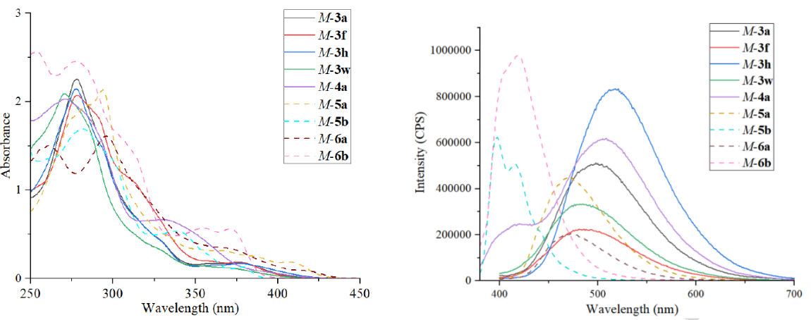 为解决上述难题,团队在前期工作基础上(Angew Chem Int Ed,2022,61, e202212005;Chem Sci, 2025, 16, 7876),利用氮杂环卡宾有机小分子催化的不对称(3+3)环化策略从头构建了吡喃-2-酮稠合[5]螺烯和[4]螺烯类化合物(Figure 1)。消旋化实验表明该类氧杂螺烯骨架具有很高的构型稳定性,易于实现后期官能团化和修饰。所合成的光学纯吡喃-2-酮稠合螺烯分子具有良好的光学物理性质和手性光学性质(Figure 2),在材料化学等领域具有潜在的应用价值。该方法不仅为不对称合成具有潜在应用价值的氧杂螺烯骨架提供了全新策略,也为有机催化不对称合成杂螺烯分子提供了新思路。
