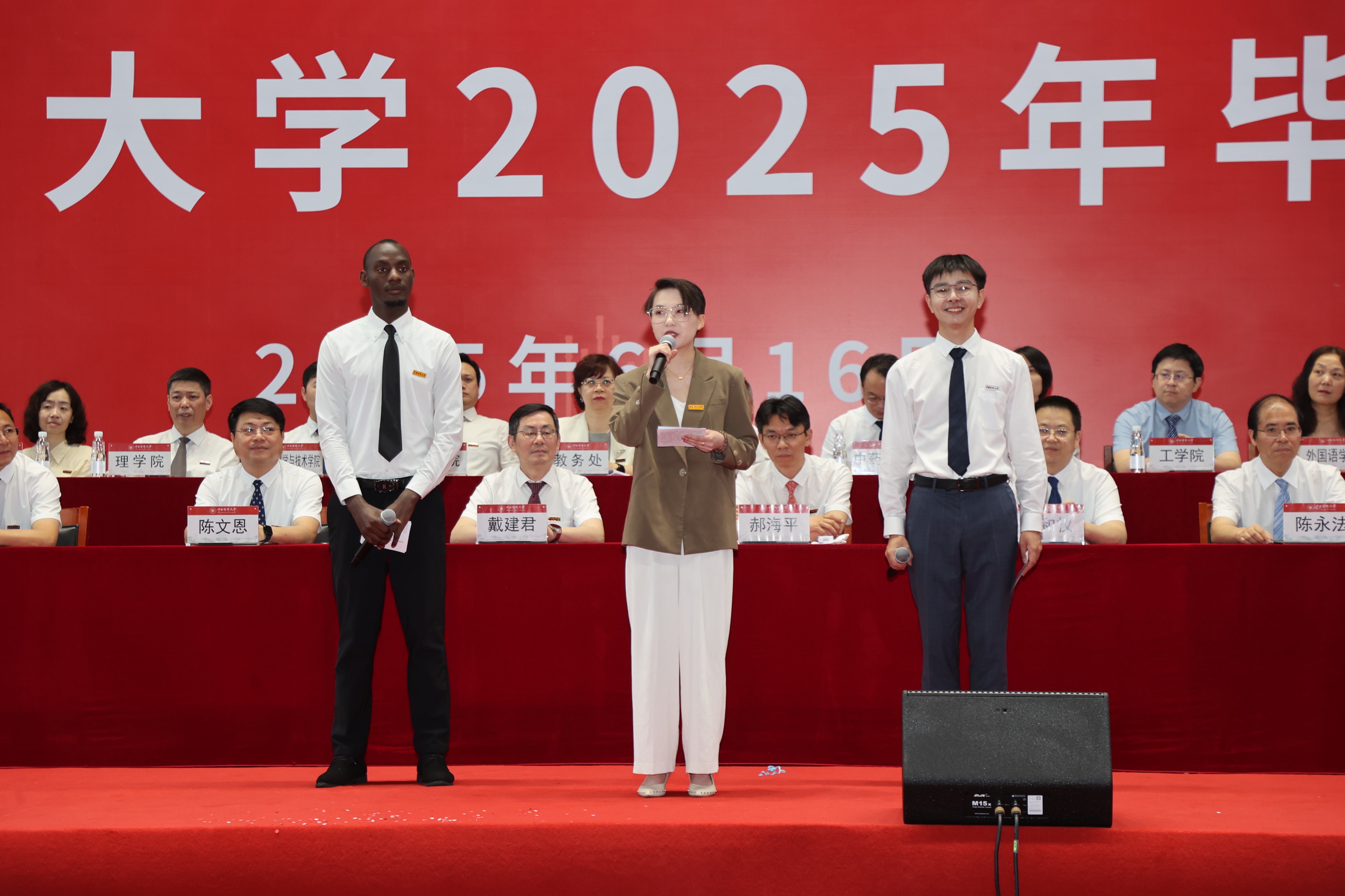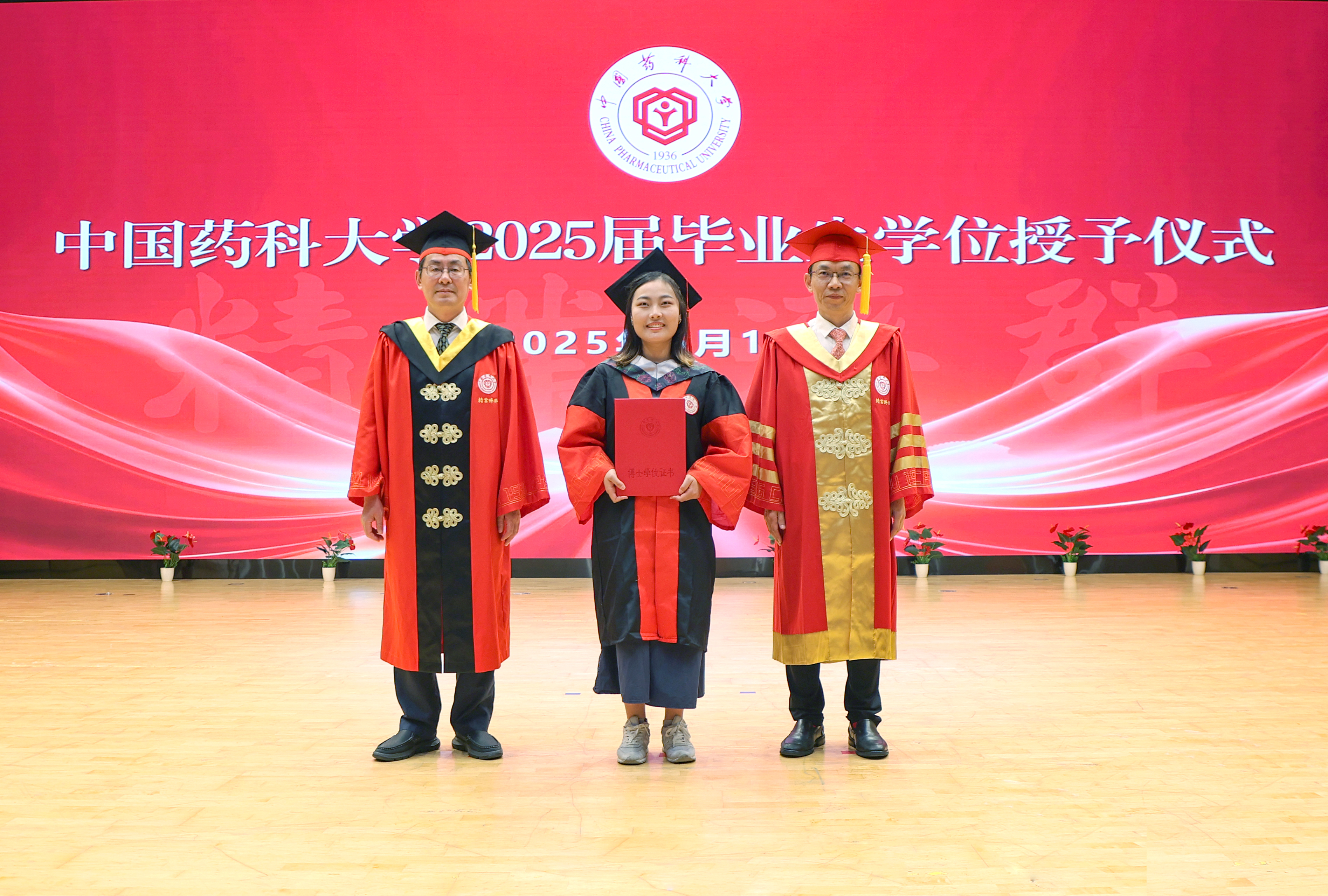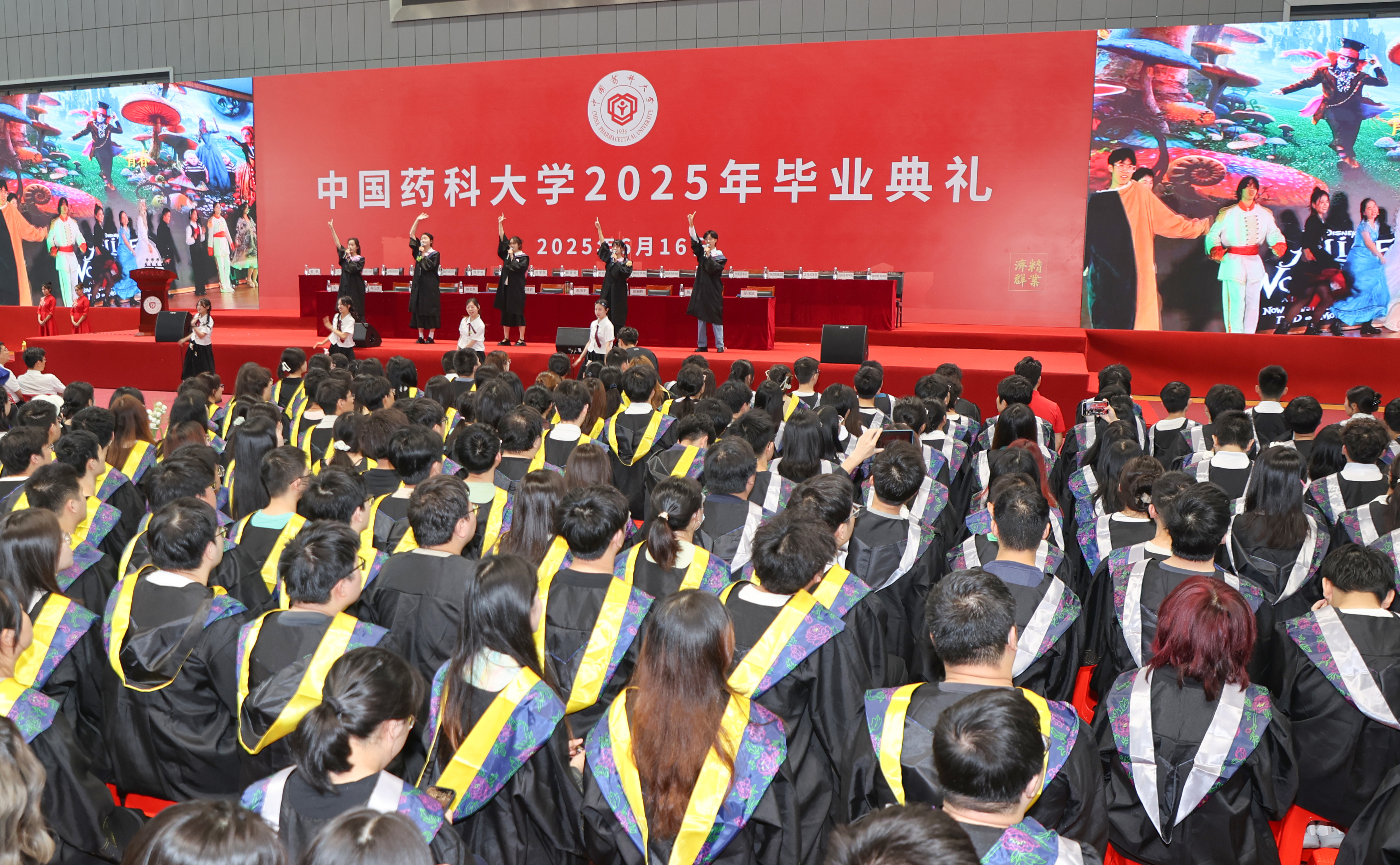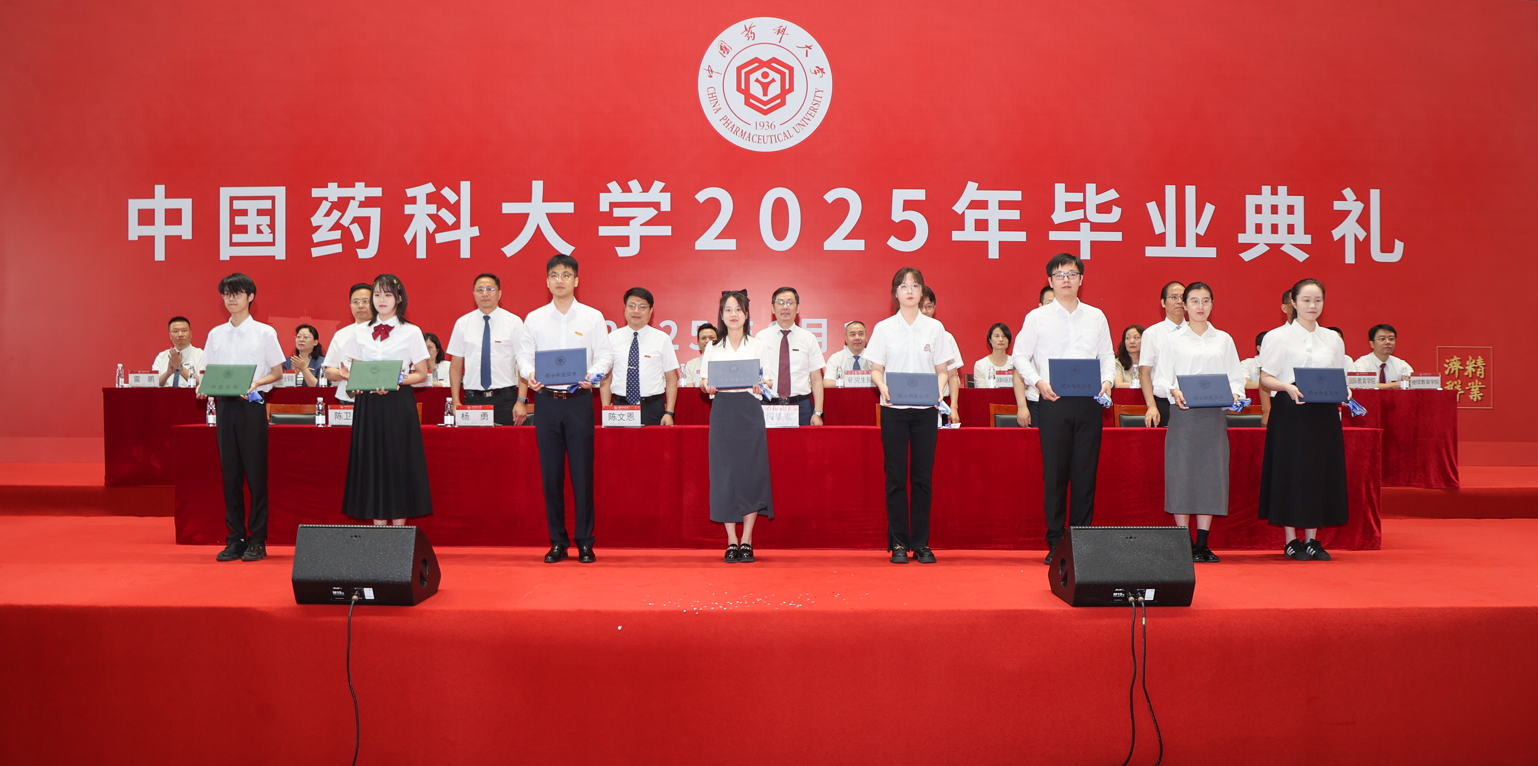 校党委书记戴建君、校长郝海平及在主席台前排就座的领导为8位不同学历层次、即将从事生物医药全产业链各环节相关工作的毕业生代表颁发毕业证书。校党委副书记朱红宣读2025届优秀毕业生表彰决定,邓涵笑等524名同学被授予校优秀毕业生荣誉称号。