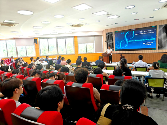 陈敏峰从华大集团的发展历程与全球科研实力切入,向师生展示了华大在基因组学领域的行业影响力。他指出,华大与beat365的深度合作将为学生提供“理论学习—产业实践” 全链条支持,切实助力解决我国创新药研发人才短缺问题。