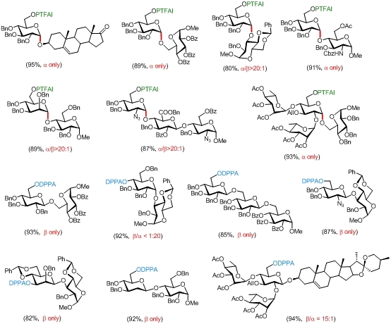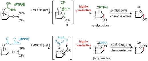 图1 PTFAI介导的α糖苷化和DPPA介导的β糖苷化