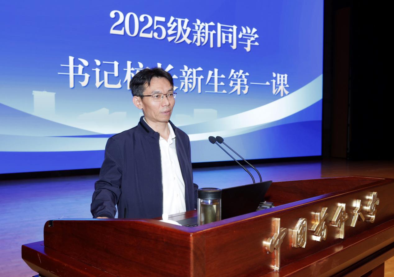 10月18日上午,校长郝海平在江宁校区会议中心大礼堂为2025级全体新生讲授“新生第一课”,全校另设31个分会场同步直播。校党委副书记朱红主持大课。有关职能部门负责同志、各学院分管学生工作党委副书记、新生辅导员参加大课。