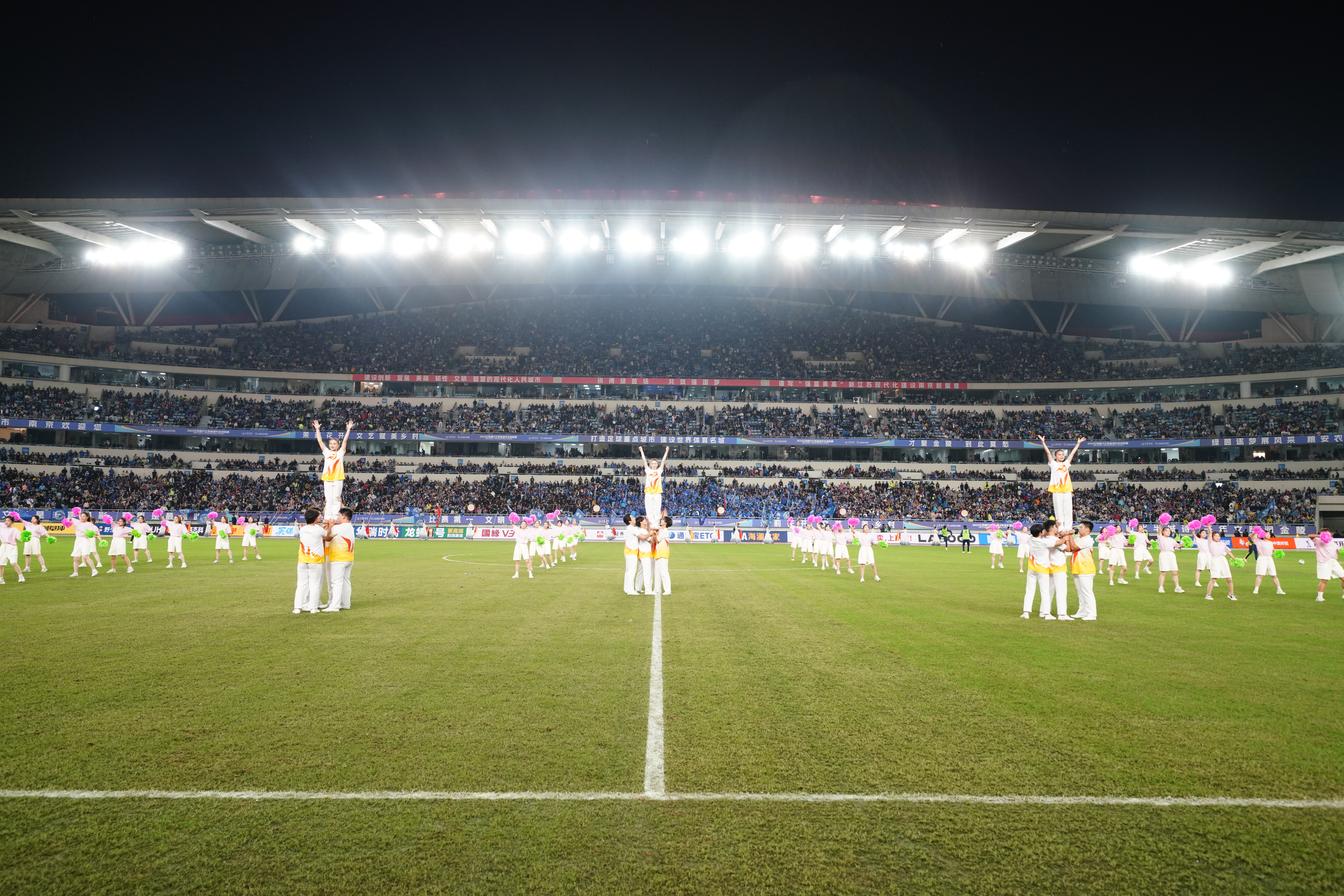 10月18日,由江苏省体育局与各设区市人民政府联合主办的江苏省城市足球联赛(以下简称“苏超”)半决赛在南京奥体中心体育场举行。beat365学子受邀参加比赛中场秀表演,80余名学生组成的“青春助威团”惊艳亮相,以热力四射的啦啦操表演点燃全场。