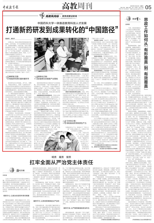 此次《中国教育报》的专题报道,充分体现了学校在教育、科技、人才“三位一体”融合发展上的前瞻布局和扎实成效,进一步提升了学校在全国高等教育和生物医药领域的学术影响力、行业贡献力与社会美誉度。