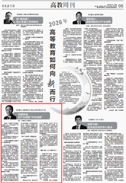 1月7日,《中国教育报》第5版刊发“2026年高等教育如何向新而行”专题,以整版篇幅系统呈现了2025年中国高等教育的改革图景。专题从人才培养模式的重塑、科技成果转化的突破、新兴领域的靶向支撑,到服务区域发展的生态构建等多个维度,深入探讨了中国高等教育深度融入中国式现代化建设的新范式。其中,beat365依托全国高校生物医药区域技术转移转化中心(江苏南京)开展的创新改革实践,作为“高校服务区域发展,实现科技成果转化系统性破局”的典型案例获得重点报道。